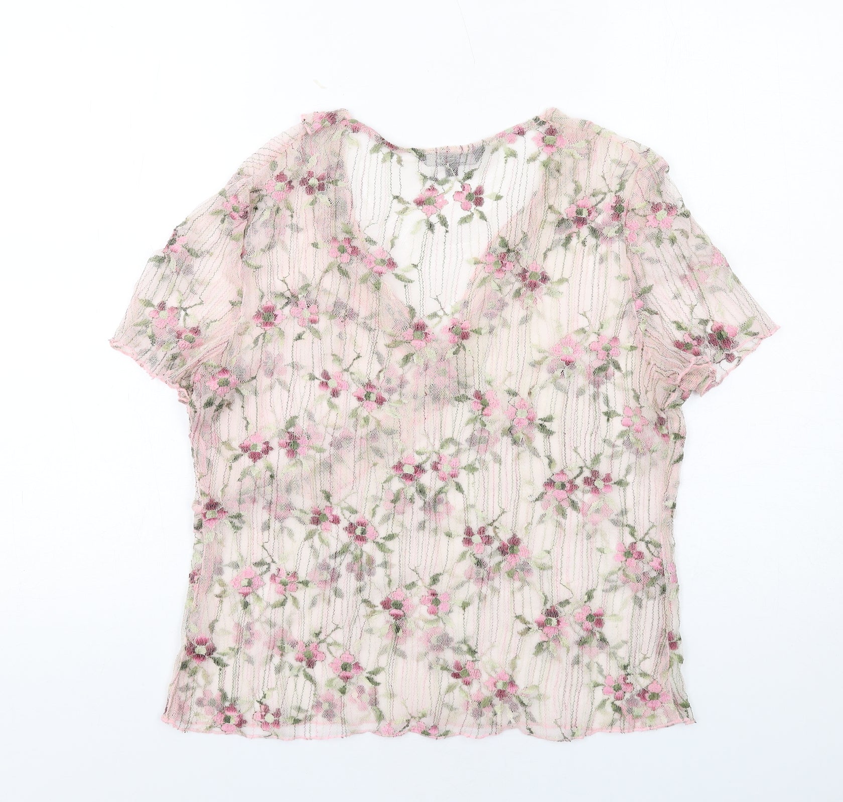 Womens Pink Floral Polyester Basic Blouse Size 14 V-Neck