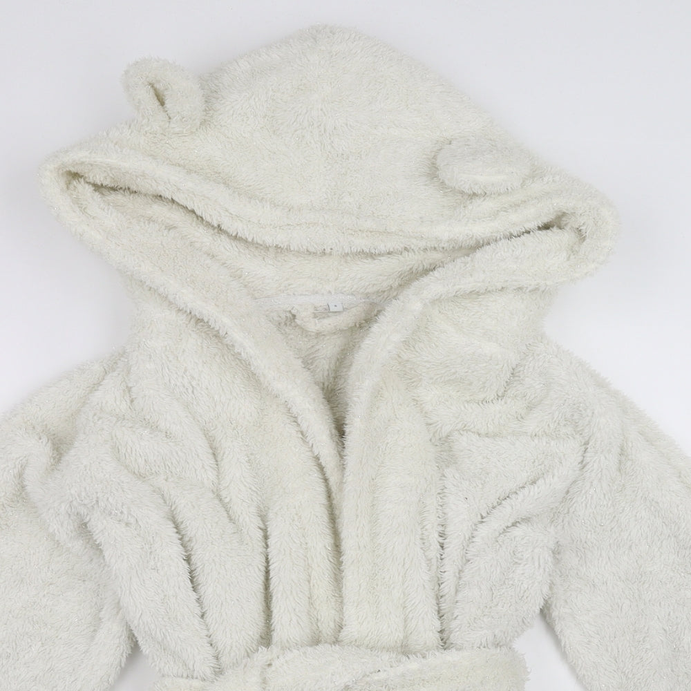 Womens White Solid Top Robe Size 8 - Ears on hood