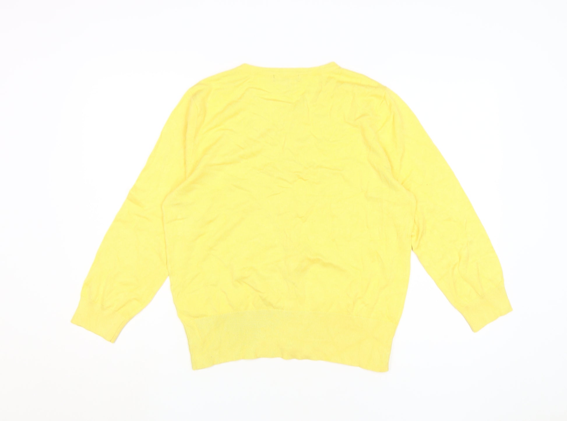 Brighten up your wardrobe with this vibrant yellow cardigan from Debenhams. Designed for women, it features a classic crew neck and long sleeves, suitable for casual occasions and ideal for layering during the spring, summer, and autumn seasons. Crafted from a comfortable blend of viscose and nylon, this lightweight cardigan offers a tight-knit fabric that provides both warmth and breathability. Its button accents add a touch of detail, making it versatile for various outfit combinations. Pair it with jeans for a laid-back look, or dress it up with a skirt for a trendy evening out. Despite some slight creasing, this excellent condition piece is machine washable, ensuring easy and convenient care. Available in size 16, this regular fit cardigan is sure to become a staple in your casual wardrobe. Offer yourself a splash of colour with this essential cardigan, combining fashion and practicality effortlessly.