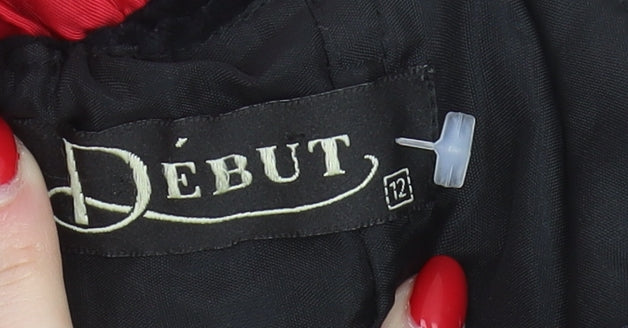 Step into elegance with this Début ball gown, perfect for making a grand entrance at any formal event. The strapless design with a sweetheart neckline flatters the figure, while the luxurious black velvet bodice contrasts beautifully with the vibrant red satin skirt. This midi-length dress, adorned in rich autumn and winter colors, makes it an ideal choice for cocktail parties or weddings. Despite slight creasing, its condition is excellent with no apparent damages. Pair this timeless piece with statement jewellery and heels, ensuring all eyes are on you. Elevate your formal wardrobe with this sophisticated and chic design, perfect for unforgettable evenings.