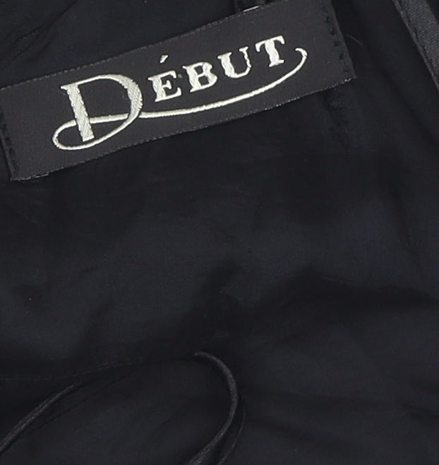 Embrace elegance with this Début black slip dress, perfect for formal occasions this autumn and winter. Featuring a classic square neckline and delicate strappy sleeves, the dress flatters in a timeless midi length. Crafted from soft polyester, it ensures comfort and maintains its sleek silhouette. Lined for added luxury, this dress is your go-to choice for sophisticated evenings. The discreet zip closure guarantees easy wear, while the sleeveless design offers versatility, ideal for layering with your favorite shawl or jewelry. Despite slight signs of wear, the dress retains its charm, promising to be a wardrobe staple for seasons to come. Dry clean only to retain its pristine look.