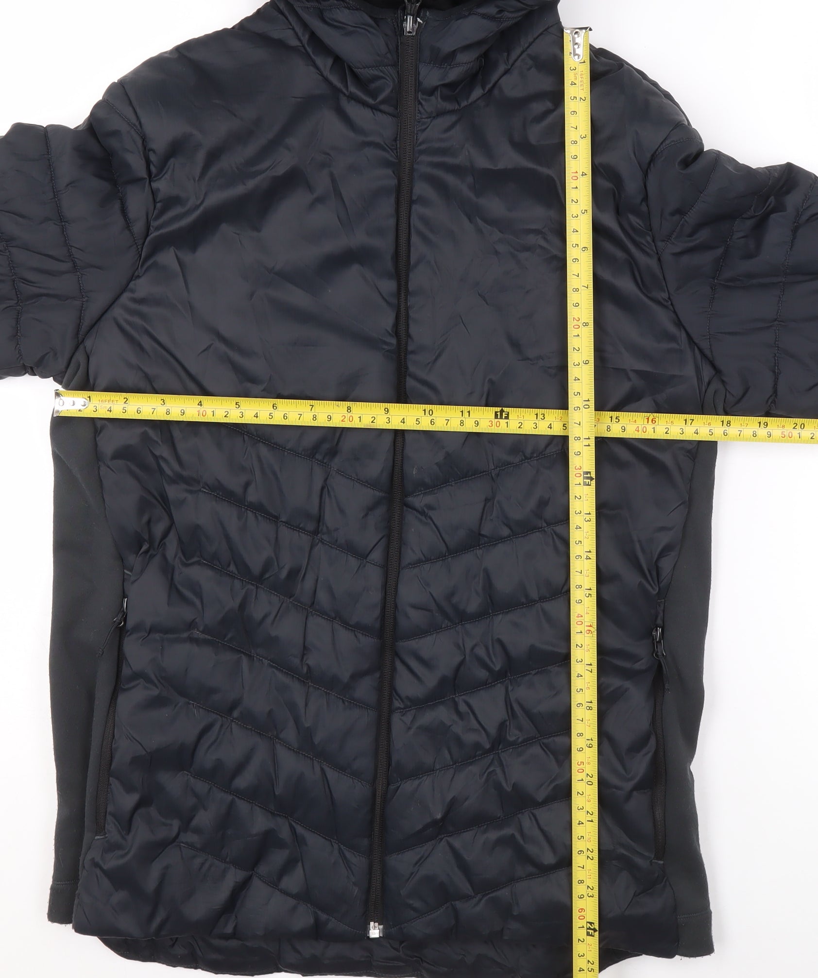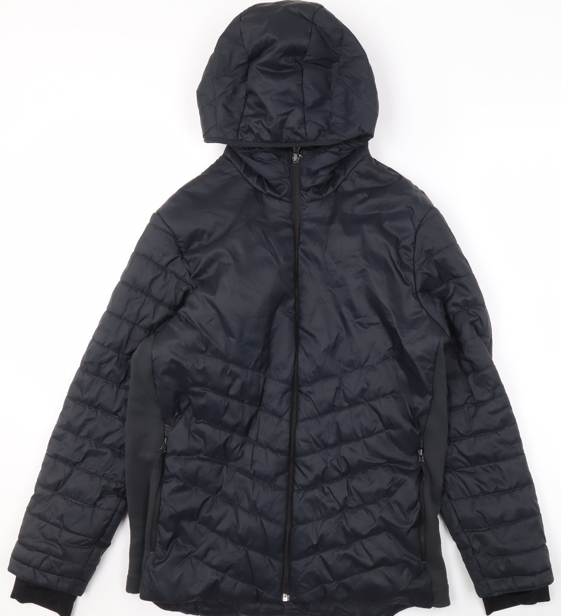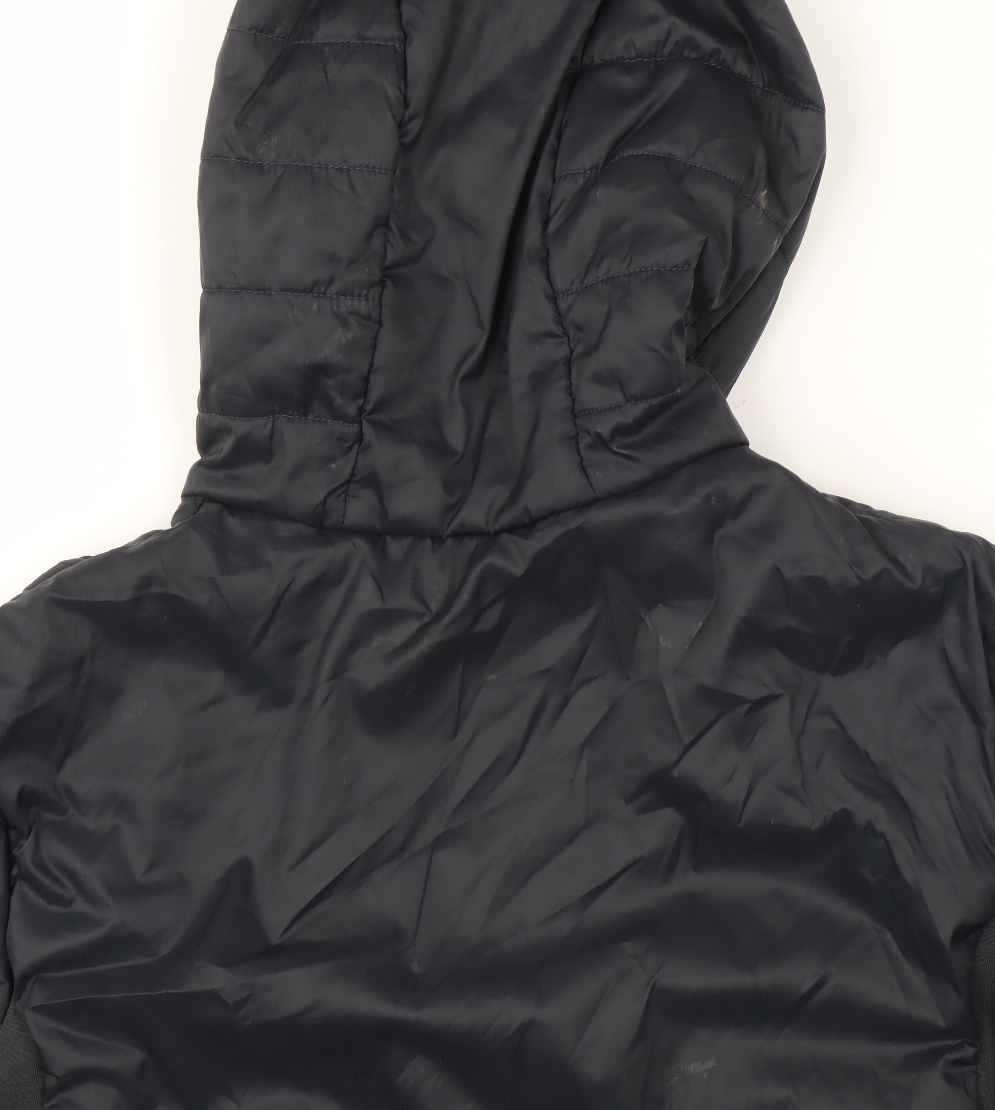 Keep your youngster warm and comfortable this season with this Decathlon Boys Black Hooded Puffer Jacket in size 14-15 Years. Designed with practicality and comfort in mind, this mid-length jacket features a lightweight yet insulated build that provides excellent protection from the cold without adding unnecessary bulk. The sleek black colour gives it a modern and versatile look ideal for everyday use — whether for school commutes, outdoor walks, or casual weekend wear.Constructed from durable 100% polyamide, the outer shell offers a smooth, water-resistant surface that helps fend off light rain and wind. Inside, a soft polyester lining enhances comfort and adds an extra layer of warmth, making this an essential piece for autumn and winter. The jacket includes a full-zip closure for easy fastening, two zipped hand pockets for secure storage, and an integrated hood for reliable protection from unpredictable weather conditions.Lightweight yet snug, this jacket performs well in both active and casual settings — ideal for walks, hiking, or everyday adventures. The quilted design not only contributes to its stylish aesthetic but also ensures even distribution of insulation, keeping warmth locked in where it's needed most. Its regular fit allows for layering underneath without restricting movement.Overall, this Decathlon jacket represents excellent quality and comfort in a simple, versatile design. With only minor creasing from storage and no original tags, it remains in very good pre-owned condition, ready for more wear. Perfect for parents looking for a reliable everyday jacket that combines durability, warmth, and timeless style — all for an affordable price.