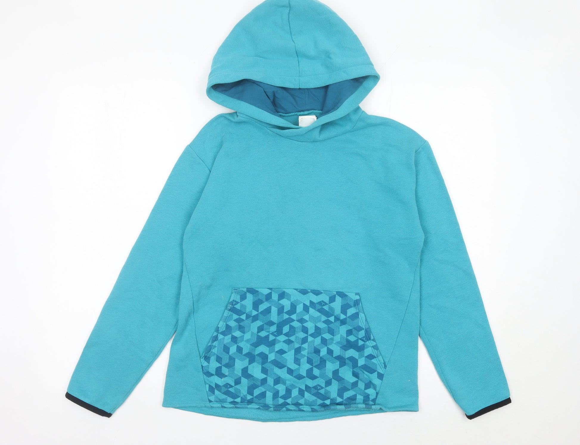 Decathlon Boys Blue Pullover Hoodie 14 Years Geometric Pocket Long Sleeve