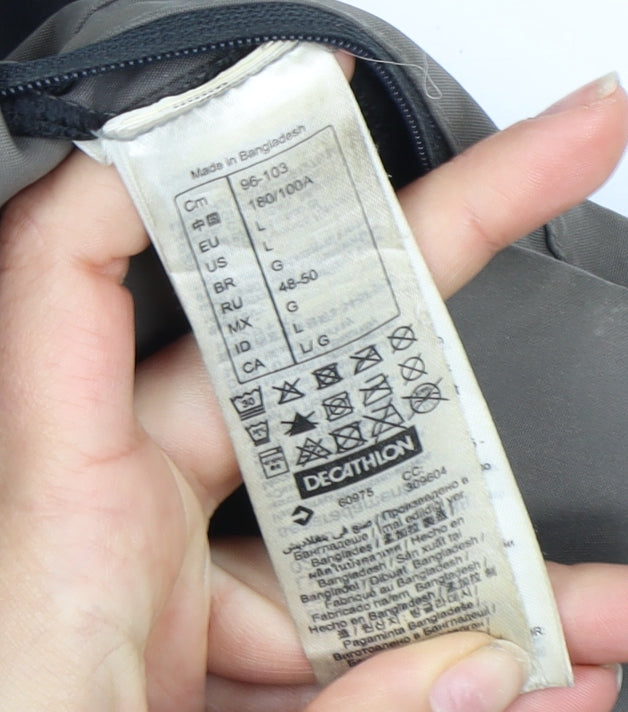 Discover the ultimate blend of style and functionality with this Decathlon Men's Black Windbreaker Jacket. Perfectly suited for both casual and outdoor occasions, this mid-length jacket is crafted from durable polyester with a polyurethane coating, offering excellent waterproofing to keep you dry in unexpected rain showers. The sleek black design complements any casual, sporty ensemble, making it a versatile addition to your wardrobe. Featuring a practical hood that ensures protection against the elements, this jacket is ideal for all seasons. Its regular fit makes it comfortable for layering, allowing you to effortlessly pair it with any outfit. The jacket is equipped with zipped pockets for the safe storage of essentials such as keys and phones, making it perfect for hiking and other outdoor activities. The machine-washable fabric ensures easy maintenance, allowing you to focus on your adventures. Despite being gently worn, it remains in excellent condition with no visible damage, providing an affordable, high-quality option for those who enjoy active lifestyles. Whether you're hitting the trails or heading out for a casual meetup, this Decathlon windbreaker is your go-to for reliable style and performance.