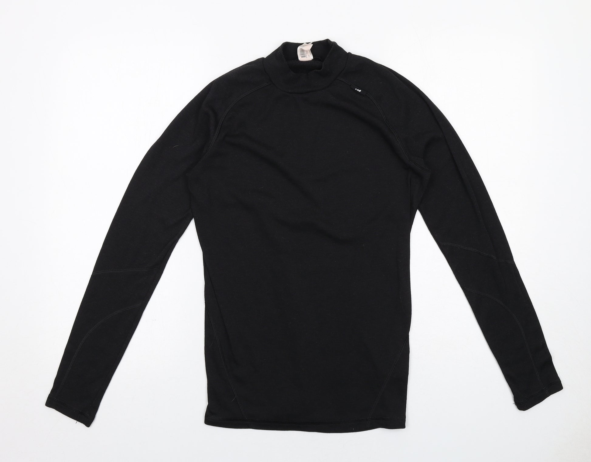 Mens Black Polyester Basic T-Shirt Size S Mock Neck Pullover