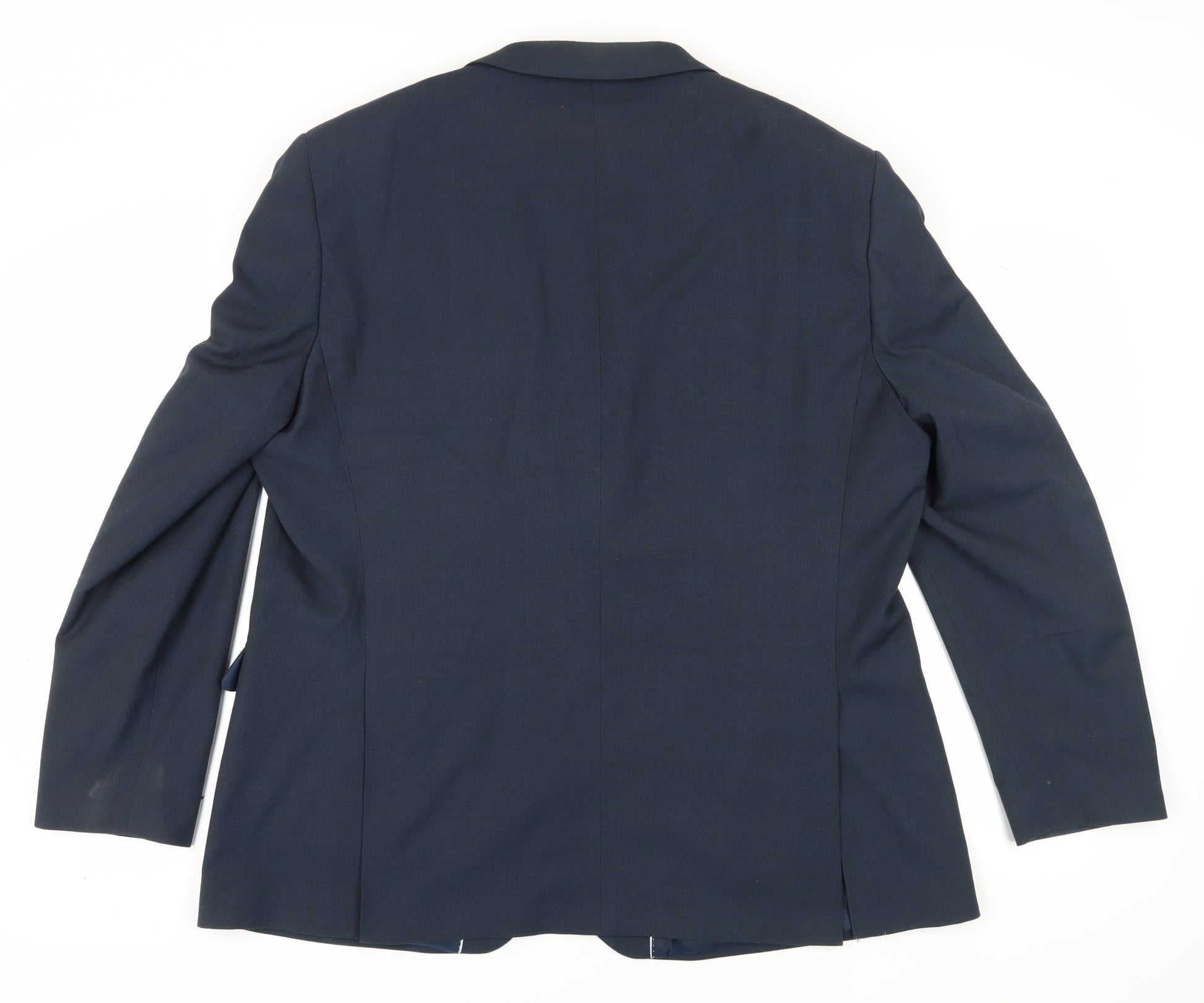 Elevate your formal attire with this sophisticated Dehavilland men's blazer, designed in a classy blue hue perfect for various occasions. This regular fit blazer, sized at 50, combines style and comfort effortlessly with its exceptional tailoring. Crafted from a durable blend of polyester, viscose, and elastane, it promises long-lasting wear and a slight stretch for an enhanced fit. The blazer features a practical two-button front closure, four-button sleeves, and a double-vented back ensuring a refined silhouette and ease of movement. Its notch lapel design adds a traditional touch, ideal for pairing with both trousers and jeans depending on the occasion. Perfect for business and formal occasions, this blazer's seamless design makes it a wardrobe staple. Its interior is designed with functional inner pockets, and it boasts a smooth polyester lining for added comfort. Minor signs of wear are present, but overall condition is excellent, making this blazer a cost-effective addition to your collection. Ready to be paired with a contrasting shirt and shoes, it offers both elegance and versatility. Available at an unbeatable price, this Dehavilland blazer is a must-have for any style-conscious individual looking to make a polished impression.
