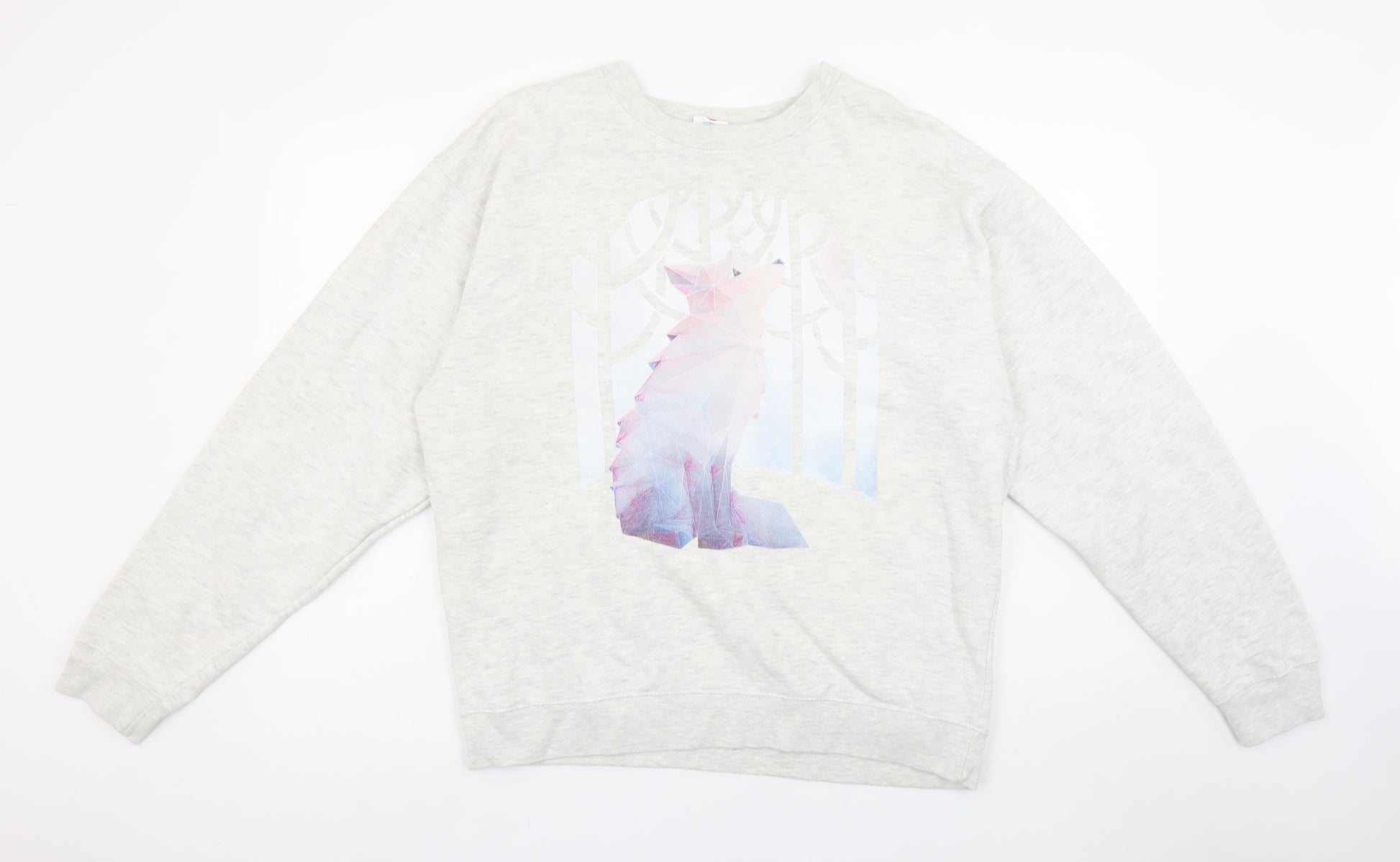 Women’s Grey Pullover Sweatshirt L Wolf Graphic Cotton Blend