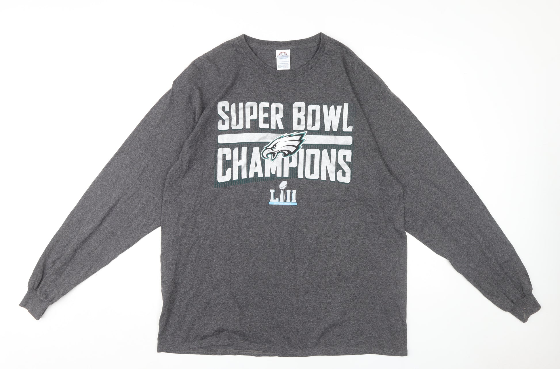 Celebrate your love for American football with this stylish Men’s XL Grey NFL Eagles Super Bowl Champions Long Sleeve T-Shirt from Delta Pro Weight. The comfortable crew neck design is perfect for sporting events, casual outings, or lounging at home. The graphic print pays homage to the Eagles' memorable victory, making it a must-have for any fan. Made from a preshrunk fabric blend of 50% cotton and 50% polyester, it ensures durability and a perfect fit even after multiple washes. The jersey fabric offers breathable comfort and effortless style throughout the year. The long sleeves add a level of warmth, making it adaptable for various seasons. With its regular fit and striking grey colour, it pairs easily with jeans or shorts for a casual, yet sporty look. The iconic logo on the front adds a touch of flair, while the lack of visible defects ensures that you receive a high-quality garment in excellent condition. Whether bought for yourself or as a gift for an Eagles supporter, this t-shirt is versatile and on-trend.