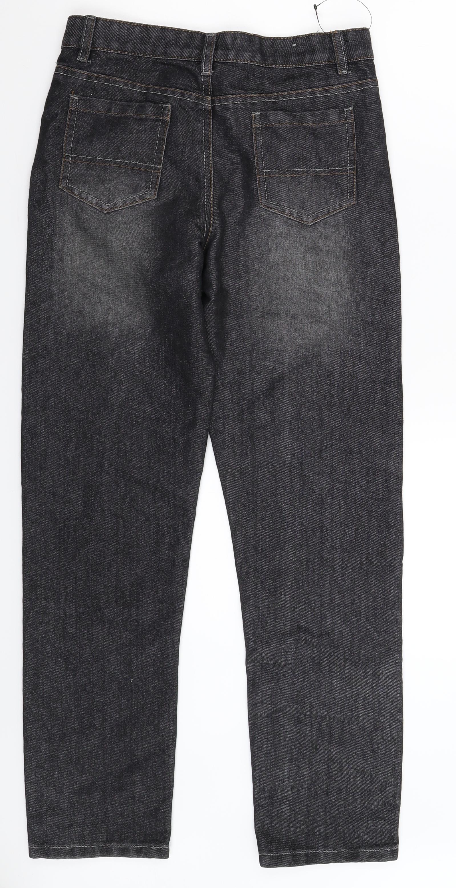 Marks and Spencer Boys Grey Cotton Straight Jeans Size 12-13 Years L25 in Regular Zip