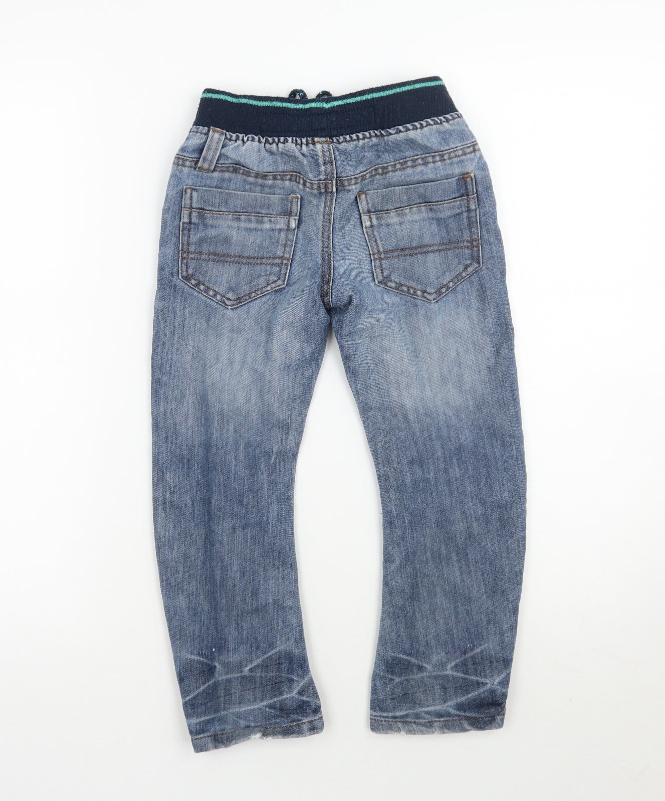 Denim & Co. Boys Blue Cotton Tapered Jeans Size 5-6 Years Regular Drawstring - Adjustable Waist