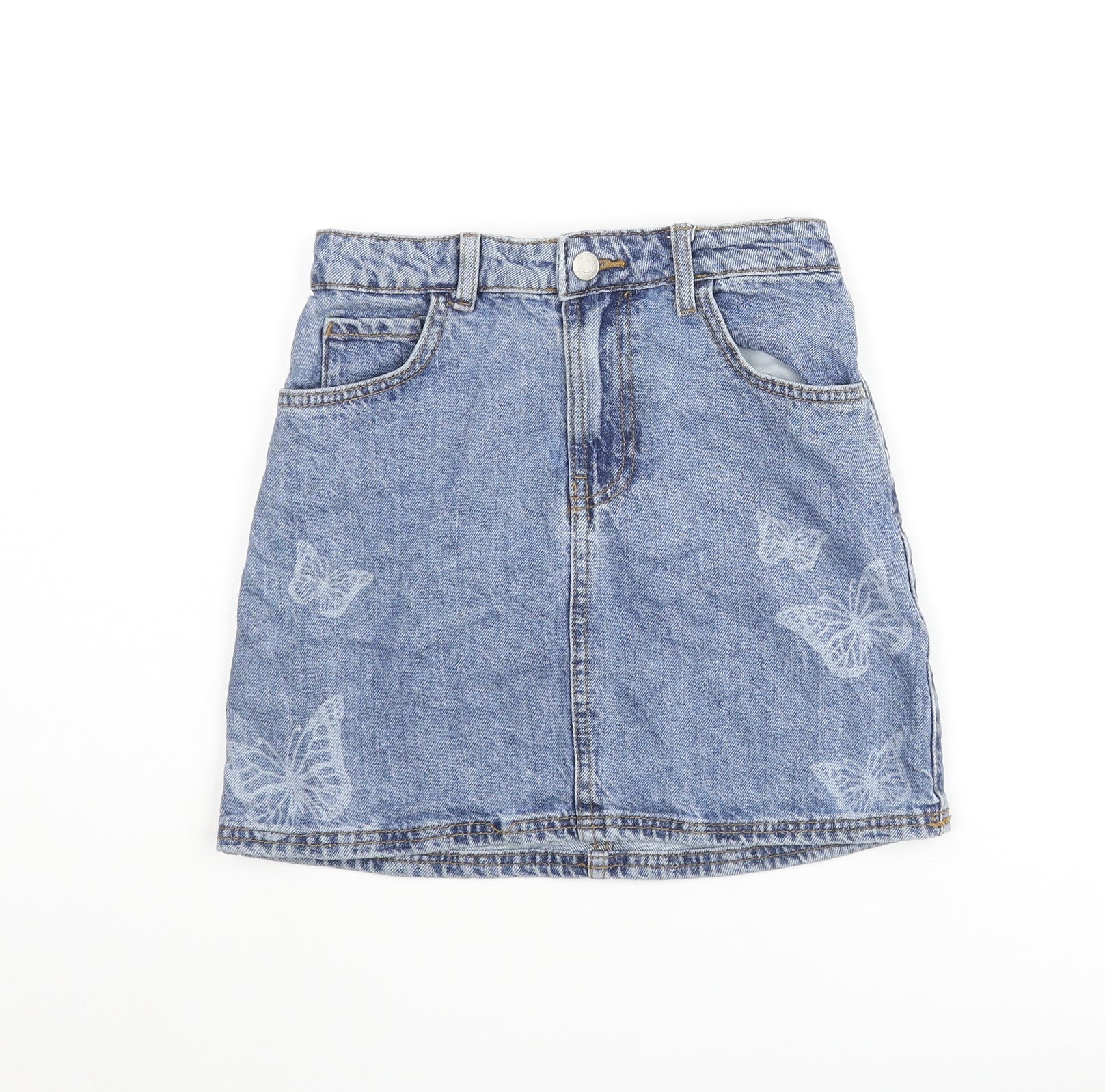 Girls Blue Cotton Straight & Pencil Skirt Size 8-9 Years Regular Zip - Butterfly Print