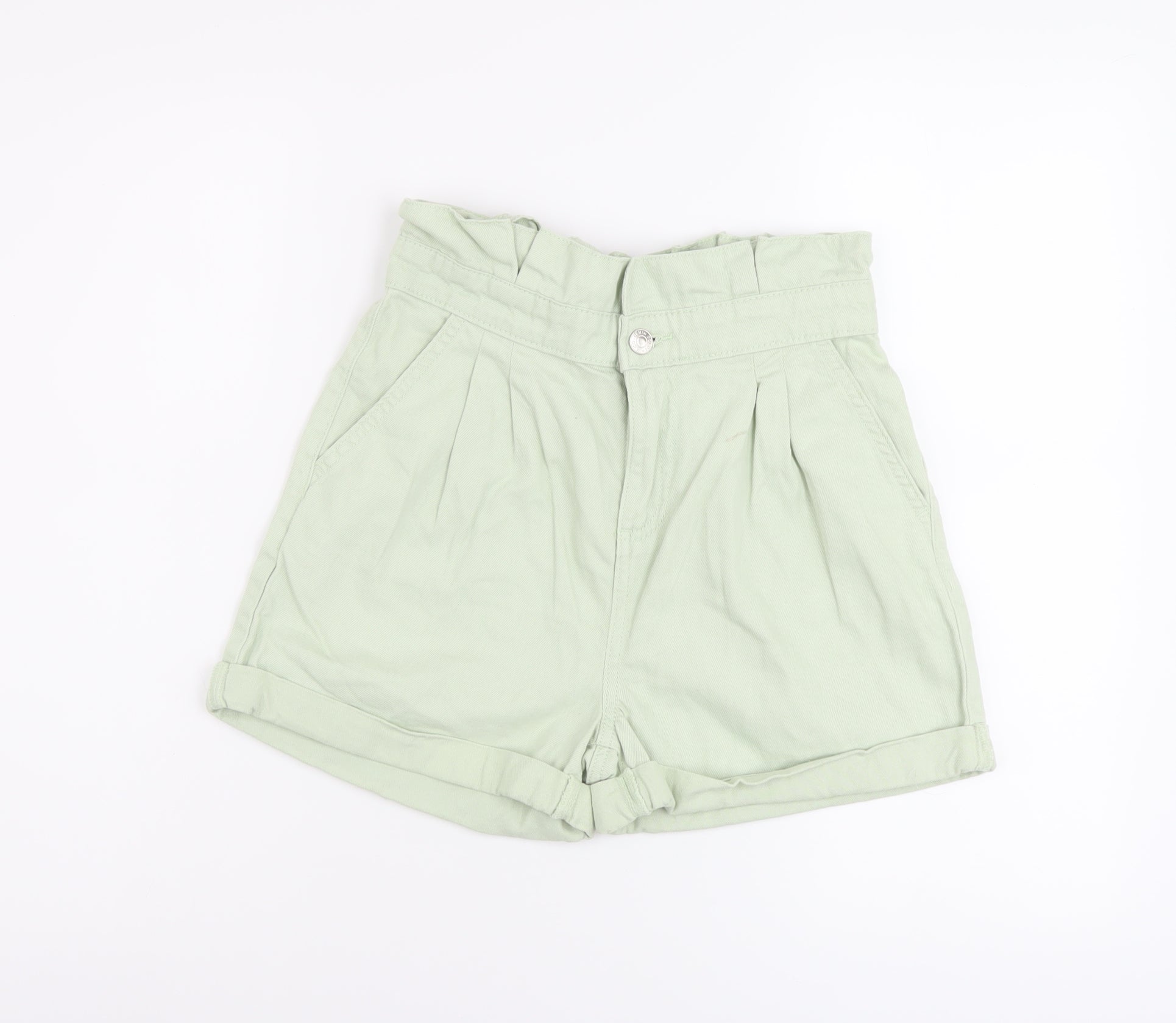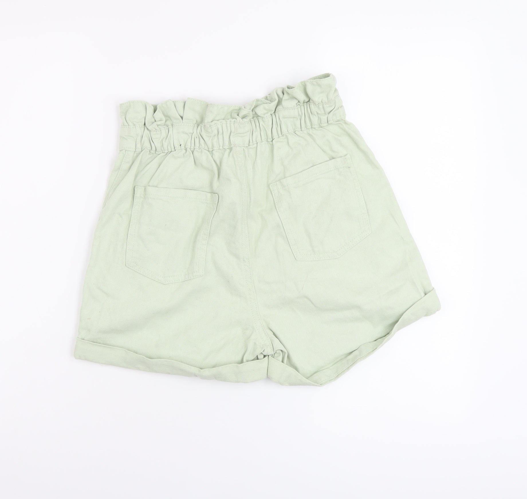 Girls Green Cotton Paperbag Shorts Size 11-12 Years Regular Zip
