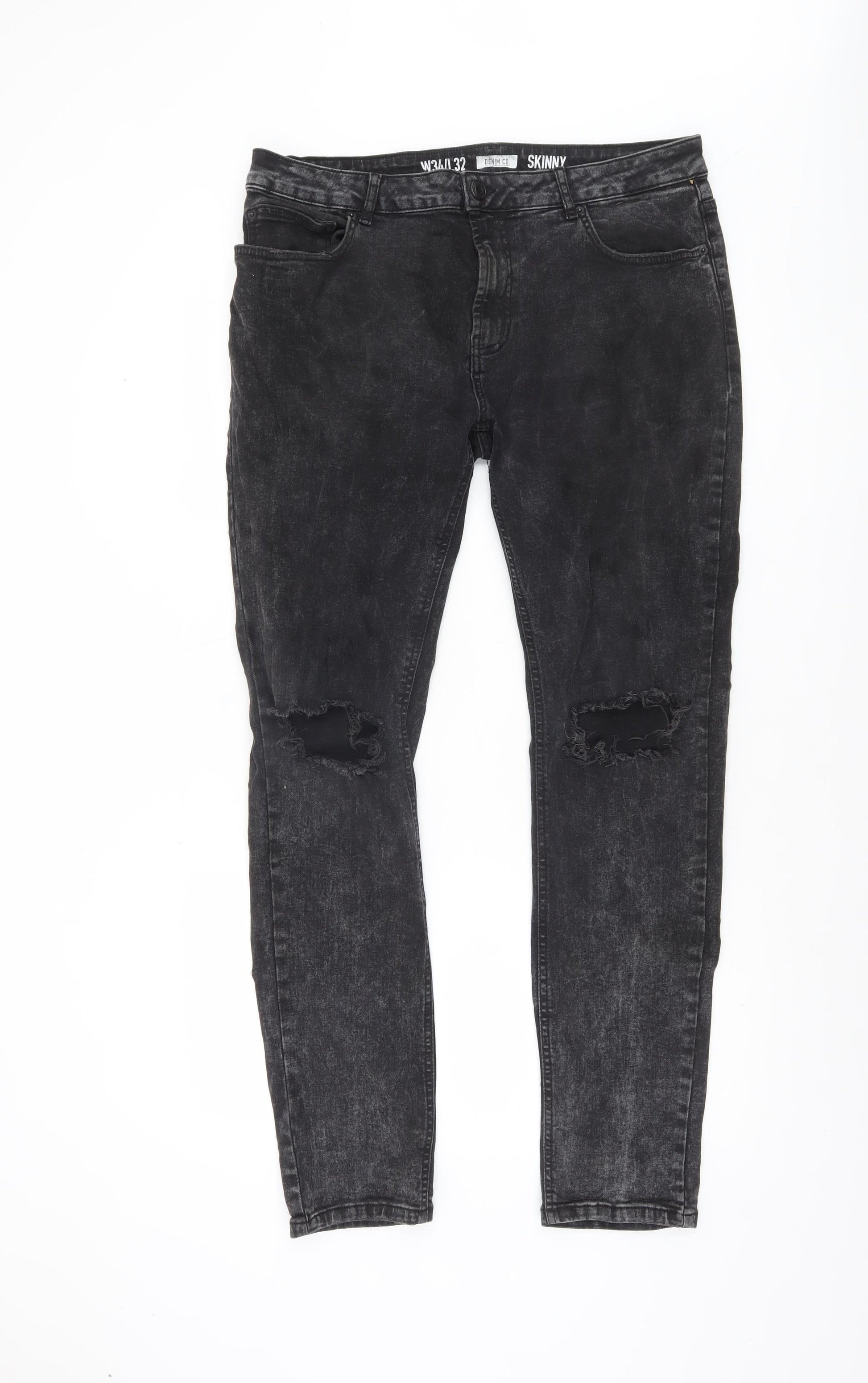 Men’s Black Skinny Jeans W34 L32 Distressed Denim