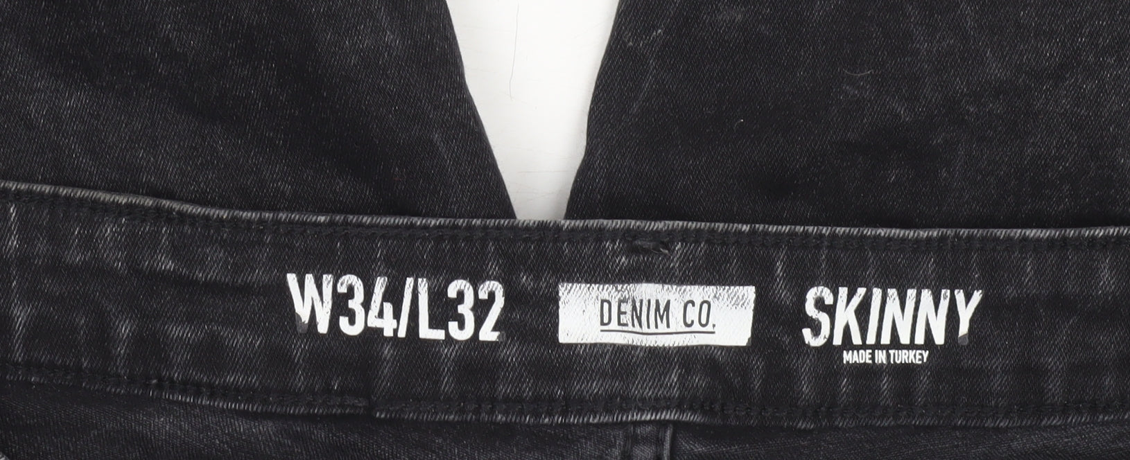 Step into effortlessly cool style with these Denim Co. men's black skinny jeans, designed to add a touch of modern edge to your casual wardrobe. Cut in a flattering slim fit with a comfortable mid-rise waist, these jeans provide a sleek silhouette while allowing enough flexibility thanks to a touch of stretch in the denim. Featuring a classic 5-pocket design, button closure, and a distressed ripped finish at the knees, these jeans offer just the right amount of attitude for contemporary wear. The washed charcoal tone delivers a grunge-inspired, lived-in aesthetic that pairs perfectly with everything from casual tees to crisp shirts. Crafted from a durable and soft denim blend of 98% cotton and 2% elastodiene, they strike the balance between comfort and resilience. Made in Turkey, they reflect thoughtful construction and modern styling that makes them a versatile essential for the cooler months. Whether you’re heading out for a relaxed weekend, meeting friends, or simply want an easy off-duty option, these Denim Co. jeans have timeless appeal with an urban twist. Designed for Autumn, Spring, and Winter wear, they can be layered effortlessly with jackets or jumpers for a relaxed, street-smart vibe. The condition remains excellent with minimal signs of use, ensuring plenty of life left in their denim fibres. Pair them with trainers for an off-duty look or boots for a rugged edge. A perfect staple for those who appreciate both comfort and style, these jeans deliver a modern fit that stays comfortable all day. Add these effortlessly cool and budget-friendly distress-finish black skinny jeans to your wardrobe and enjoy a style that never fades from trend.
