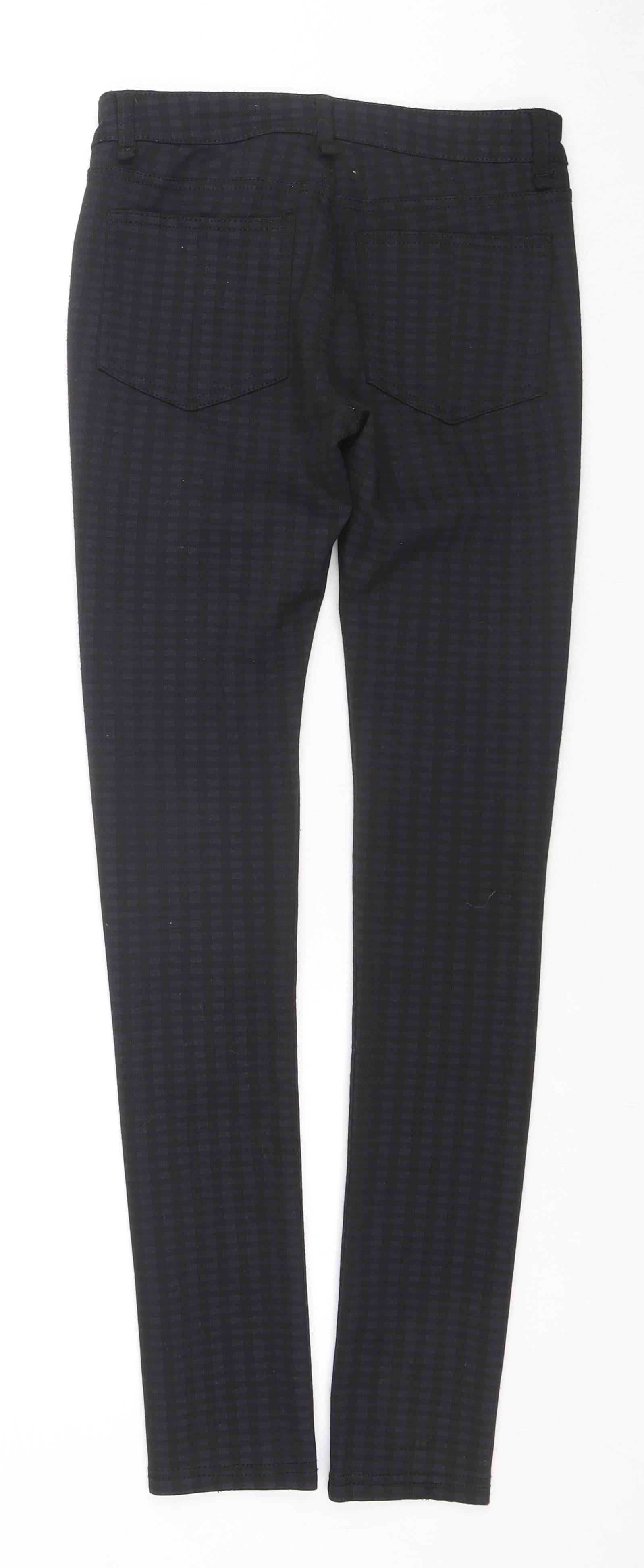 Womens Black Check Polyester Trousers Size 6 L28 in Regular Zip