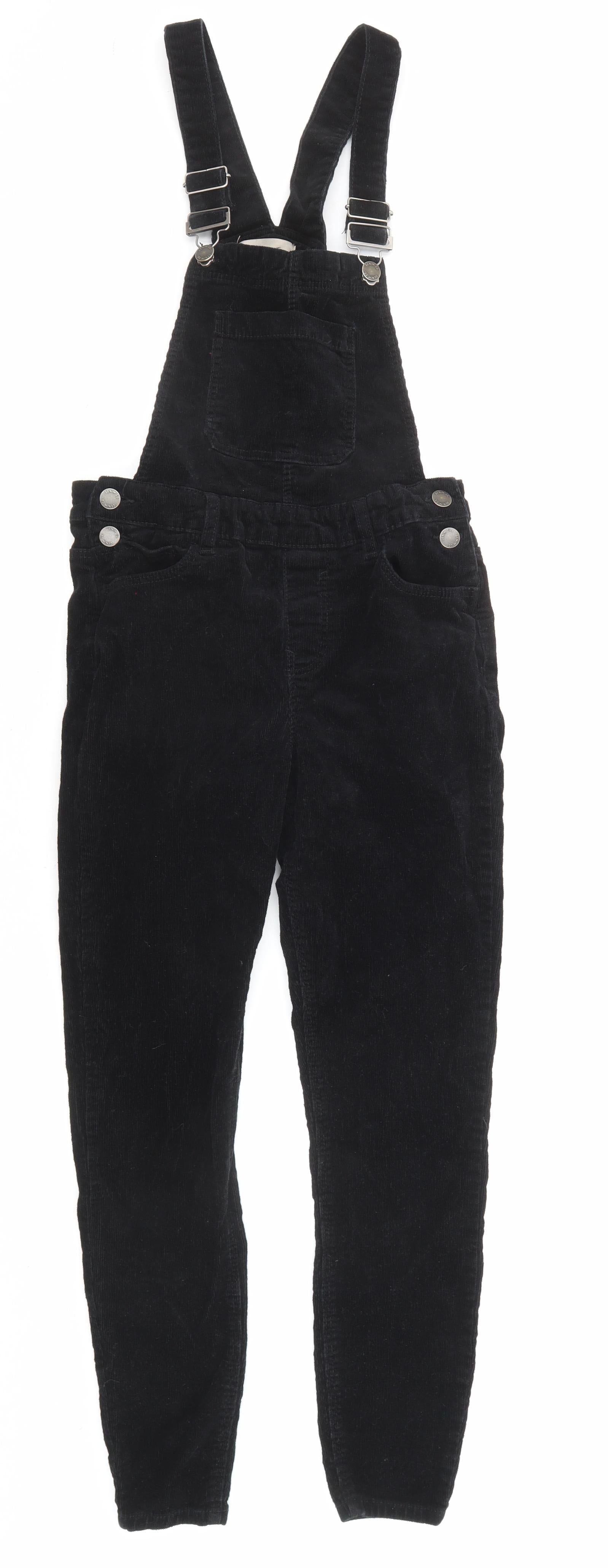 Womens Black Cotton Dungaree One-Piece Size 8 Button