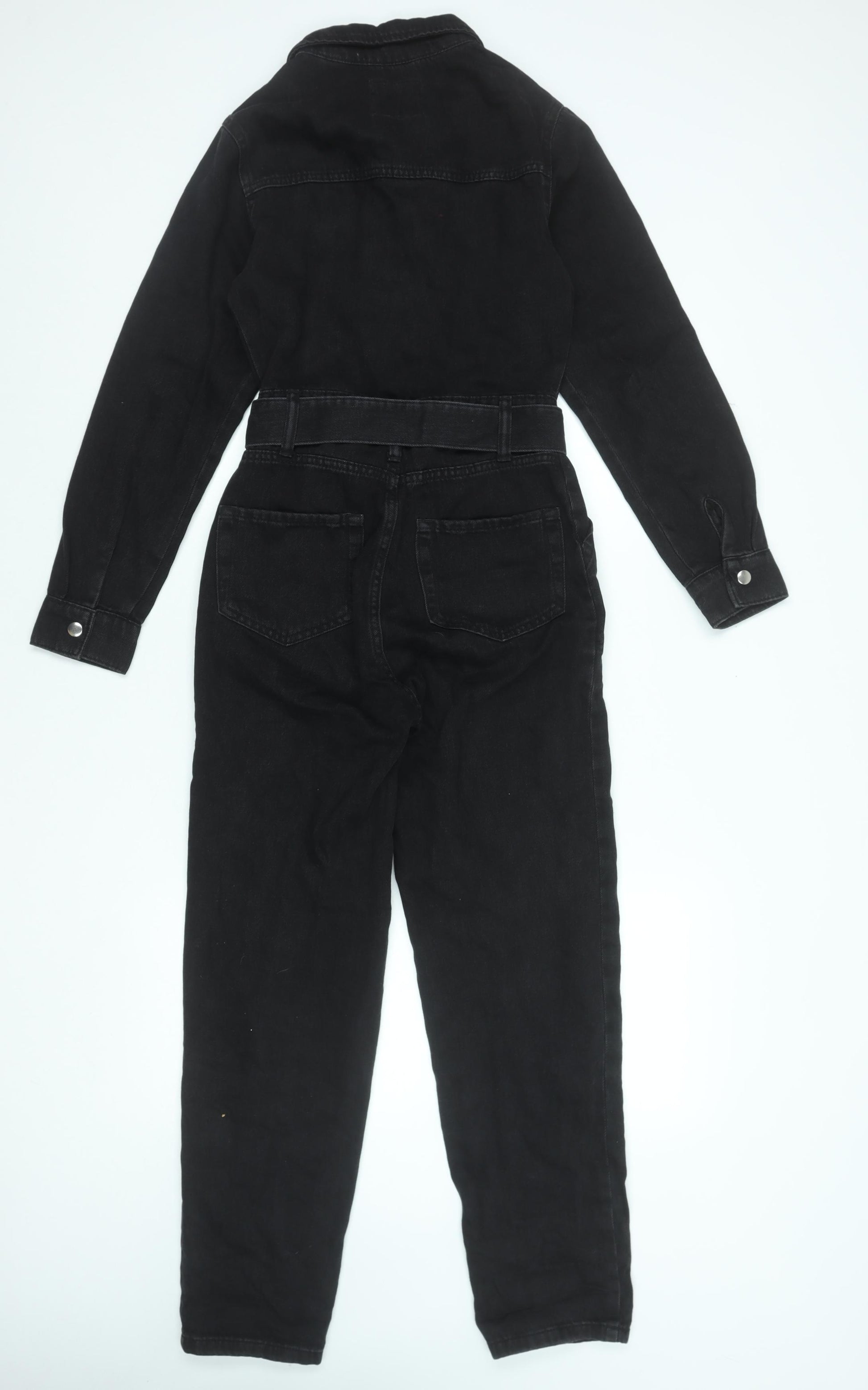 Women's Black Denim Belted Jumpsuit Size 4 Regular