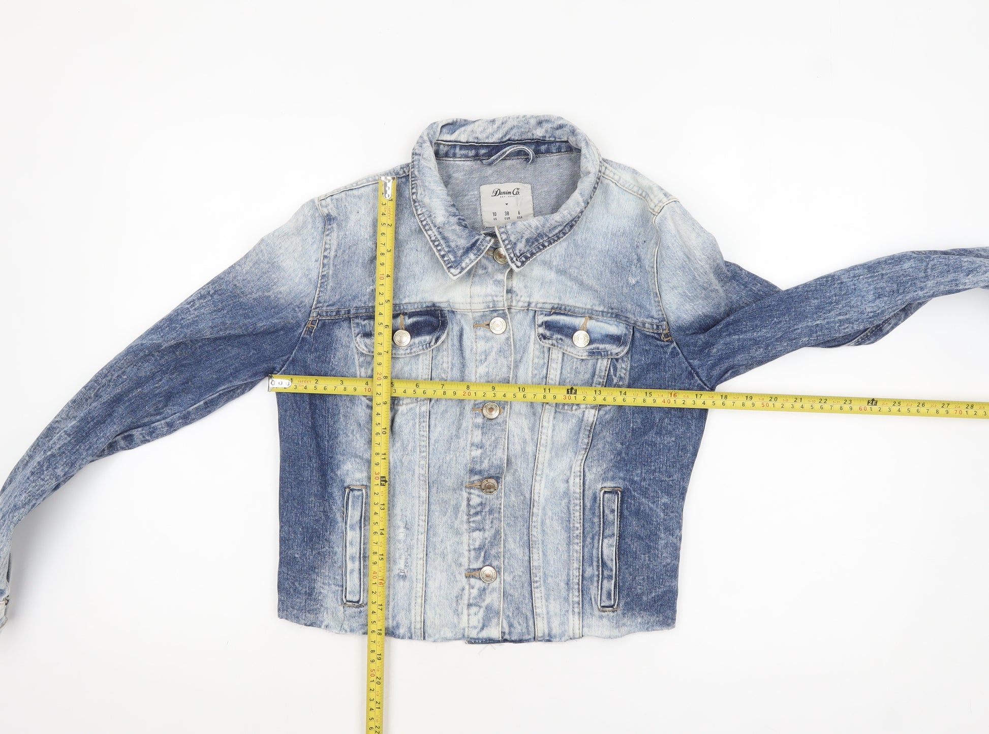 Add a timeless piece to your wardrobe with this Denim Co women's blue denim jacket. Crafted from 100% cotton for durability and comfort, this jacket combines vintage inspiration with modern casual style. The cropped length and faded wash create a flattering silhouette, while the classic button front and collared neckline bring effortless structure to any outfit. With front button pockets and additional side pockets, it balances practicality and ease for everyday wear. Designed in a regular fit with long sleeves, this denim jacket is ideal for layering across multiple seasons, from cool spring days to breezy autumn evenings. The high-quality cotton fabric ensures softness and breathability while remaining resistant to everyday wear. Perfect for pairing with dresses, skirts, or jeans, it embodies a laid-back denim look suitable for travel, weekend outings, or relaxed casual settings. This jacket is fully machine washable for easy care. In excellent pre-loved condition with light wear, it shows no significant flaws and remains clean and well-maintained. A versatile wardrobe essential, this Denim Co piece delivers a stylish classic look that never goes out of fashion. Ideal for anyone seeking a dependable denim layer that adds a touch of effortless charm, this blue denim jacket promises to stay fashionable season after season.
