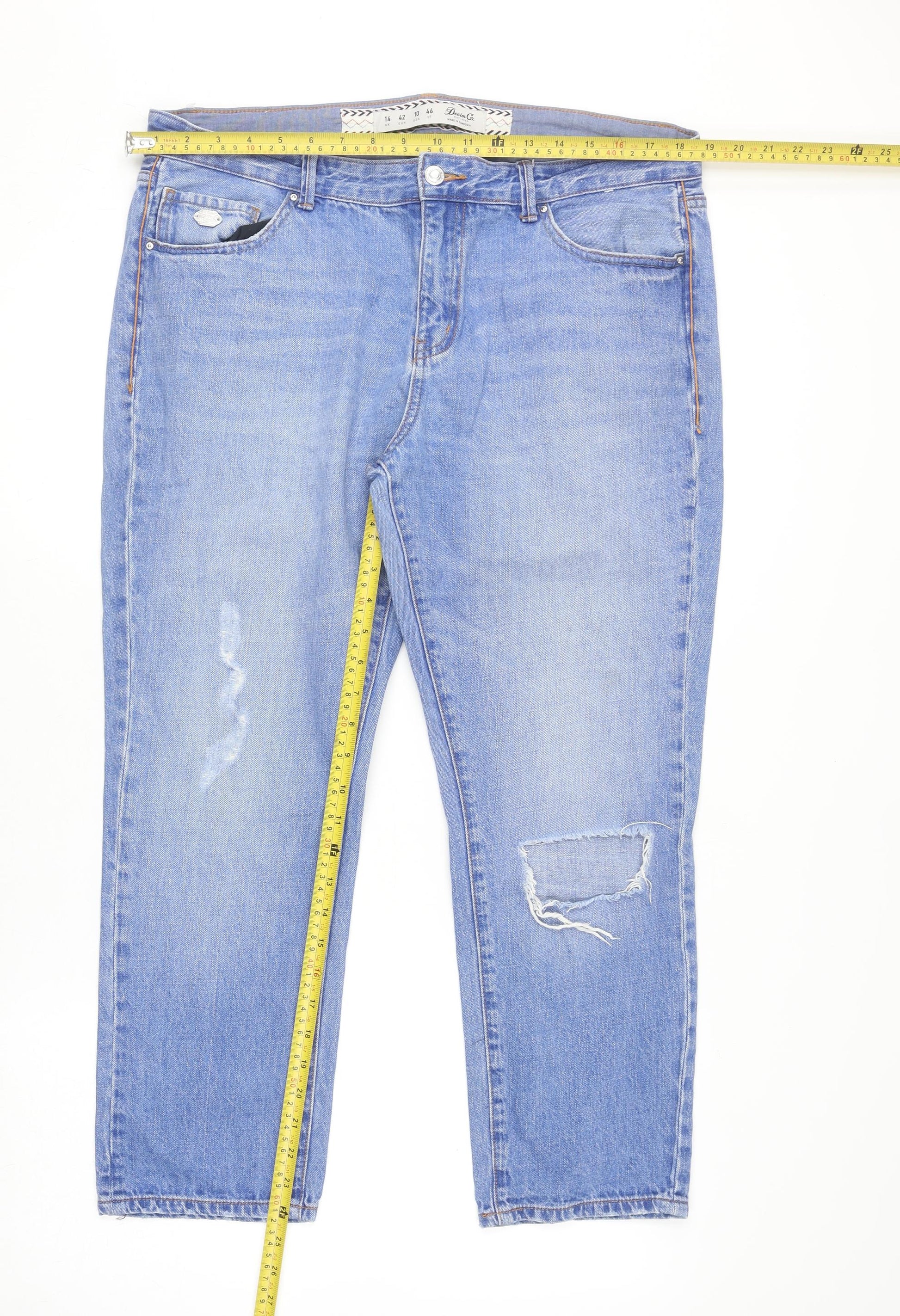 Womens Blue Size 14 Relaxed Distressed Boyfriend Jeans