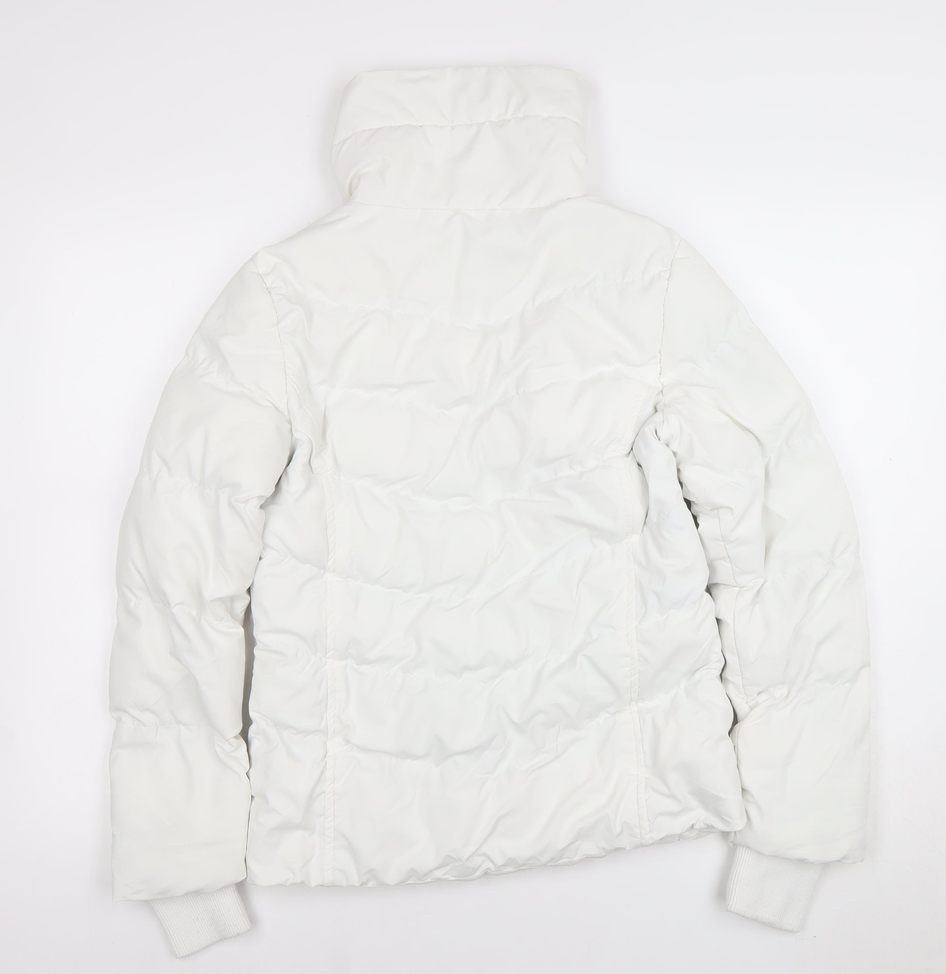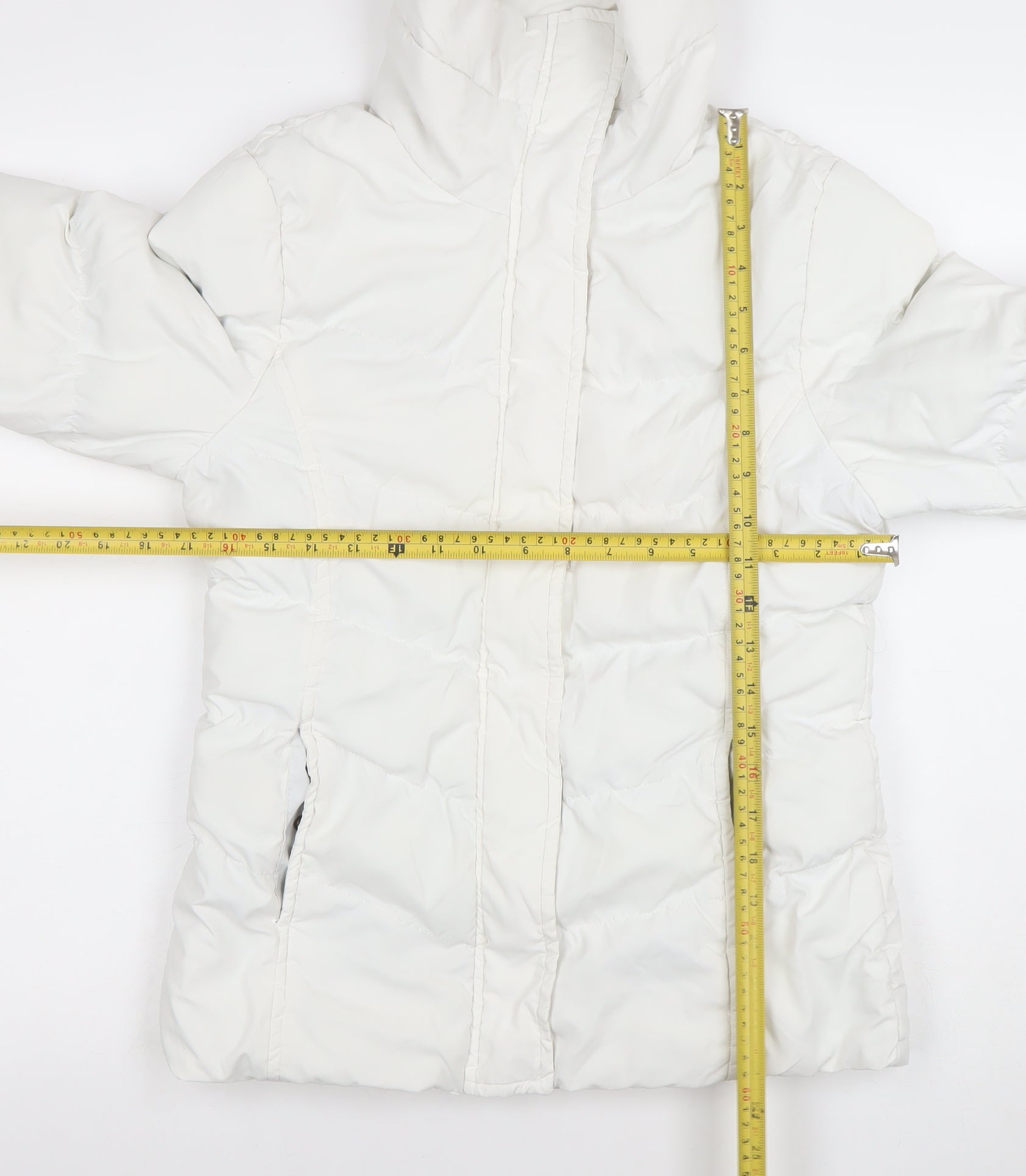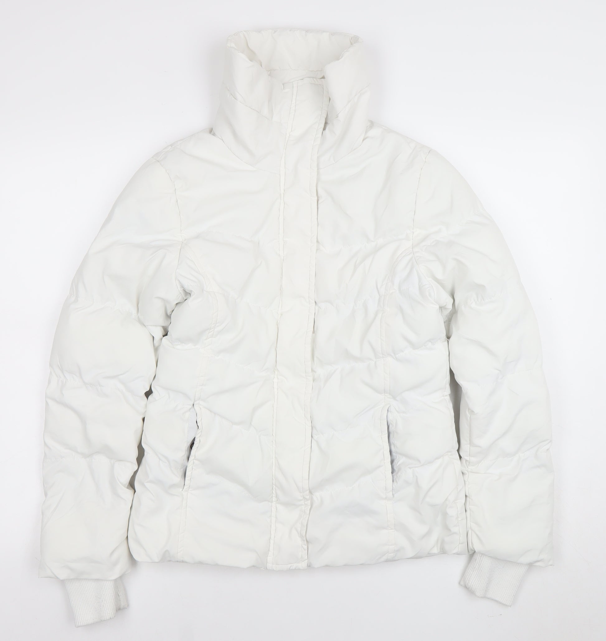 Stay effortlessly stylish and warm in this classic women's white puffer jacket by Denim Co. Crafted from 100% polyester with a soft microfibre finish, this mid-length jacket combines comfort and function with modern simplicity. Designed in a regular fit, it features a full front zip closure, two handy side pockets, and a high neck for added protection against the cold. The polyester filling provides excellent insulation while maintaining a lightweight feel, making it ideal for those chilly autumn and winter days. The clean white colour adds versatility to your wardrobe, pairing perfectly with jeans, skirts, or dresses for a sleek casual look. The jacket’s smooth polyester lining ensures comfort and durability, while the elasticated wrist cuffs help retain warmth. Whether you’re heading out for a winter walk, city outing, or travel adventure, this versatile coat delivers timeless appeal and practicality. With its minimal pattern and classic puffer design, it offers a flattering silhouette suitable for all casual occasions. The garment is machine washable, ensuring easy care for everyday wear. In excellent pre-owned condition with minimal signs of use, this Denim Co puffer jacket remains a stylish and reliable choice for the colder seasons. A chic essential for women who value both style and warmth, it’s the perfect addition to your cold-weather collection.