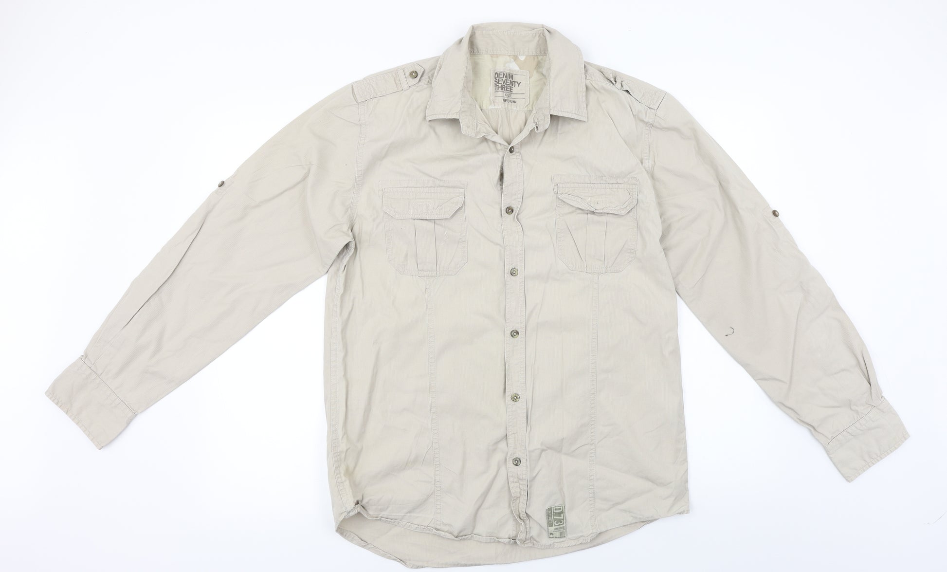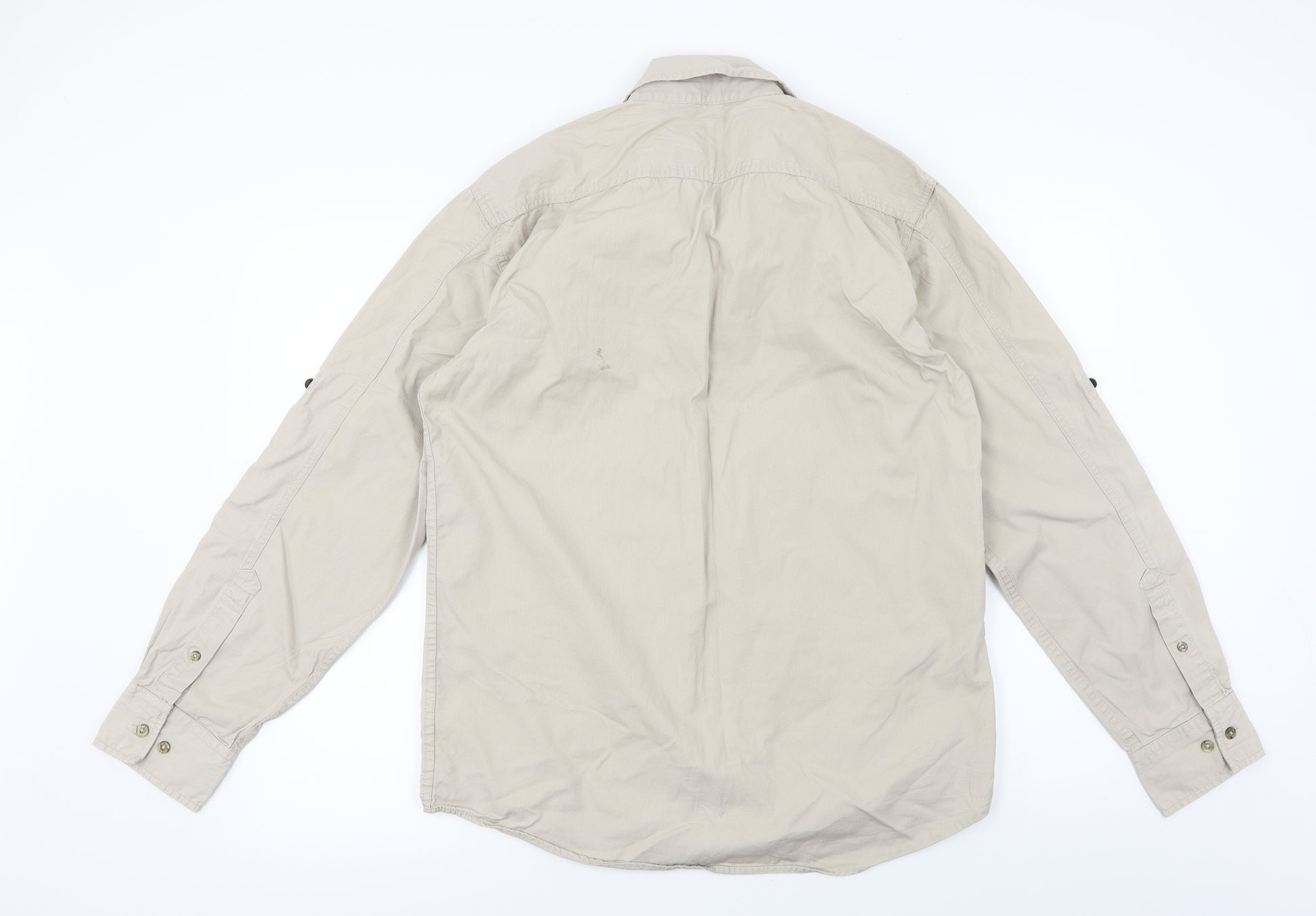 Esprit Mens Beige Polyester Button-Up Size M Collared Button
