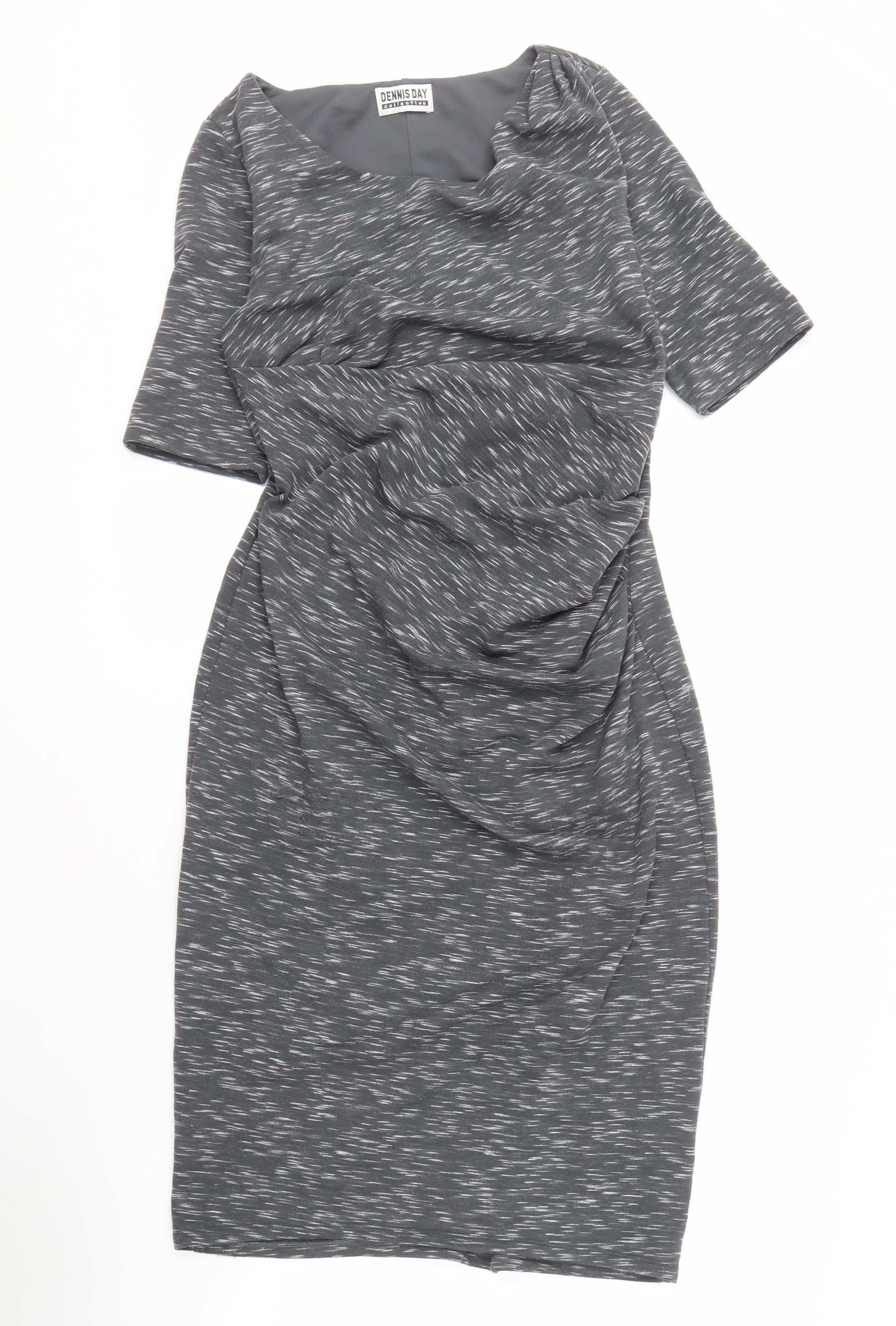 Elevate your wardrobe with this elegant grey dress from the Dennis Day Collection, perfect for any stylish woman. Crafted in a versatile size 10, this dress offers a classic fit that complements the feminine silhouette effortlessly. The dress boasts a sophisticated grey hue that can be paired with a range of accessories for various occasions. While the exact style details are understated, this piece is ideal for a wardrobe staple, offering endless outfit possibilities. Enjoy the simplicity of a no-pattern design, perfect for a seamless transition from day to night. Crafted with attention to detail, this dress is in excellent condition, showing only light wear with no visible defects. Perfect for the contemporary woman who values both comfort and style. Grab this delightful piece and add timeless elegance to your collection.