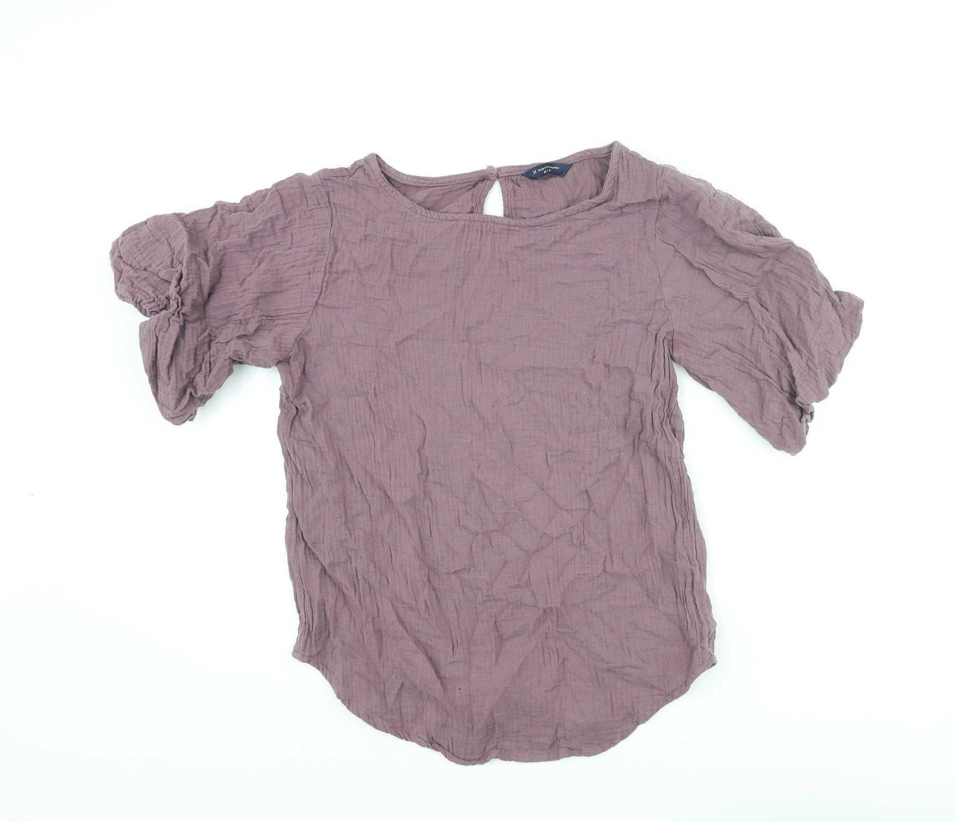 Womens Purple Cotton Basic Blouse Size M Round Neck