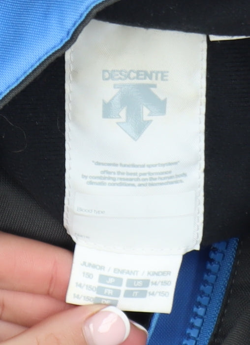 Get ready for the slopes or chilly winter weather with this quality Descente Boys Blue Waterproof Hooded Ski Jacket in size 14-15 Years. Designed by Descente, a brand known for high-performance outerwear, this jacket combines technical function with stylish design. Crafted from durable 100% polyester, it features a structured woven outer shell that’s both waterproof and windproof, ensuring your child stays dry and comfortable throughout the day. The fully insulated and lined interior provides exceptional warmth for outdoor adventures, whether on the ski slopes or casual winter wear. The sleek blue colour is contrasted by black and white colourblock panels that add a sporty, dynamic feel. Key details include a detachable and adjustable hood, full front zip with secure snap placket, and multiple zippered pockets ideal for storing gloves, snacks, or ski passes. Reflective elements offer additional safety in low light conditions, while the adjustable cuffs provide a secure fit. Constructed from high-performance materials, the jacket is both breathable and water-resistant, making it perfect for skiing, snowboarding, hiking, or general winter play. This Descente ski jacket is in very good pre-owned condition, showing only minor signs of wear on the cuffs with no stains, tears, or structural faults visible. Ideal for active boys or unisex kids who need reliable winter sports gear that keeps up with every move. Machine washable for practical care, this jacket represents both quality craftsmanship and great everyday style. Perfect for ski trips, holidays, or cold-weather school commutes, it’s a dependable layer for all winter conditions—comfortable, stylish, and ready for adventure. Secure this versatile and durable Descente Boys Ski Jacket today and upgrade your child’s outerwear for the winter season.