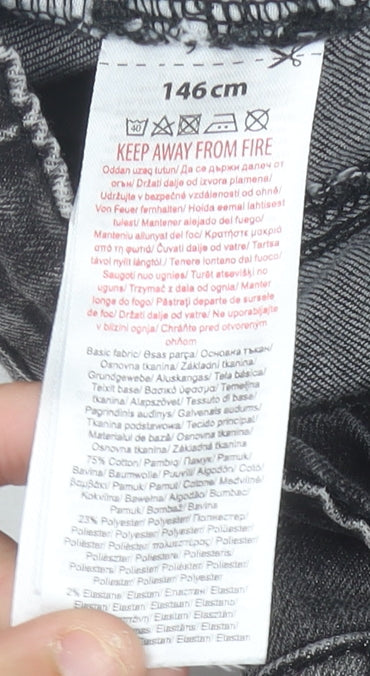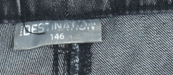 These DESTINATION boys’ black jeans are the perfect blend of style, comfort, and practicality, designed to keep up with the energy of everyday life. Crafted from a high-quality blend of 76% cotton, 22% polyester, and 2% elastane, these jeans offer the durability of denim with a touch of stretch for maximum comfort and movement. The black stone wash finish gives them a stylish, contemporary look, while the simple design ensures they are versatile enough to pair with anything in your child’s wardrobe. Featuring an elastic waistband for an easy and secure fit, these jeans are perfect for active boys who are always on the go. The functional pockets add extra practicality for storing small essentials, while the straight leg cut provides a classic fit that remains in style year after year. Ideal for casual wear, school, or play, these jeans transition seamlessly between seasons, making them a reliable go-to all year round, particularly in autumn, spring, and winter. At 146 cm (UK 11 Years) with a 25-inch waist and 26-inch inside leg, they are well-proportioned for growing kids, offering comfort without compromising on style. These jeans are machine washable for easy care, ensuring they remain looking fresh and ready to wear. In excellent pre-owned condition with no visible stains, rips, or damage, they are competitively priced to offer superb value for money. Whether teamed with a hoodie for a laid-back look or paired with a smart shirt for a slightly dressier occasion, these DESTINATION stone-wash black jeans will quickly become a favourite in your child's wardrobe. Don’t miss the chance to pick up a high-quality, stylish, and comfortable pair of boys’ jeans at a great price.