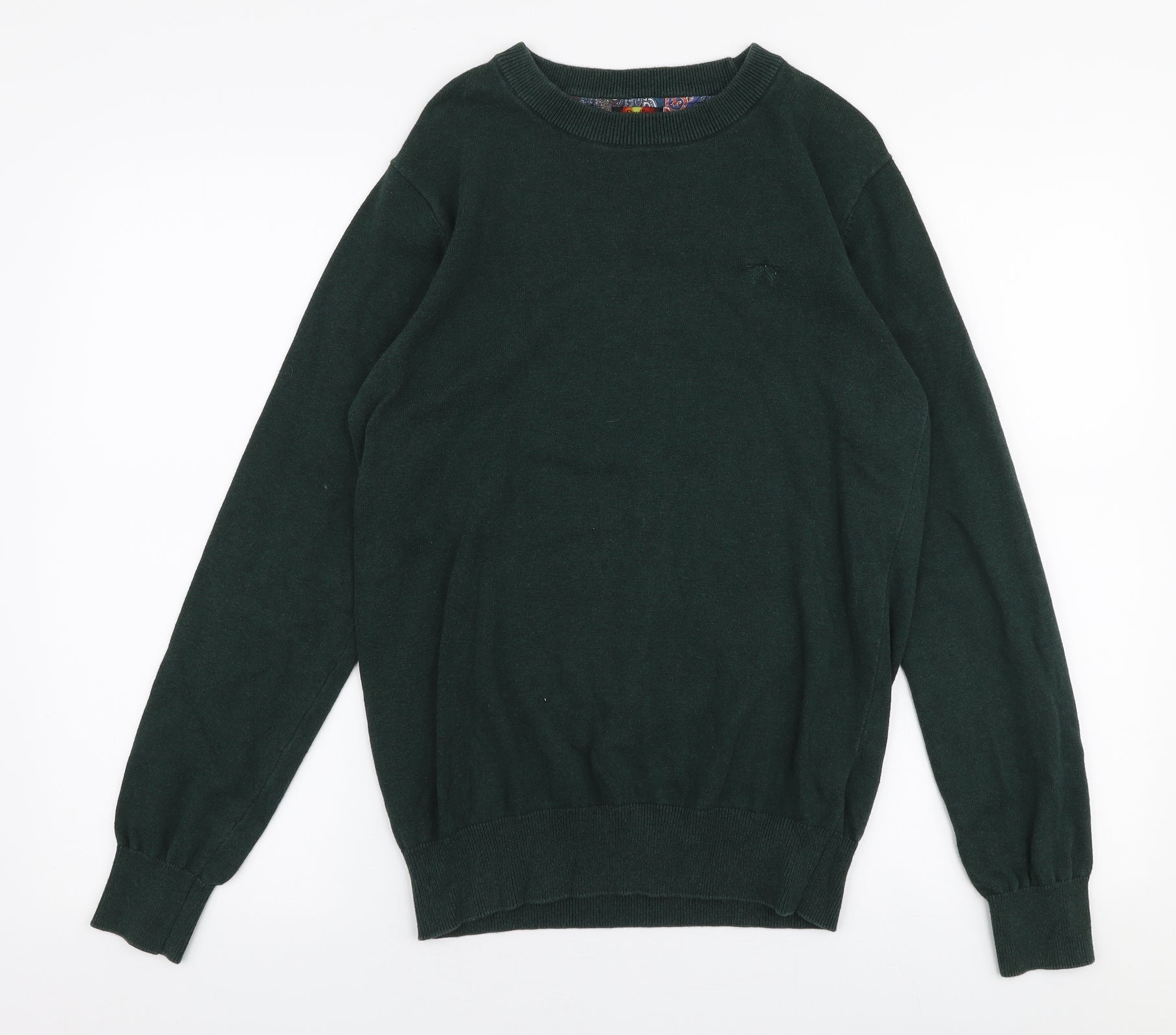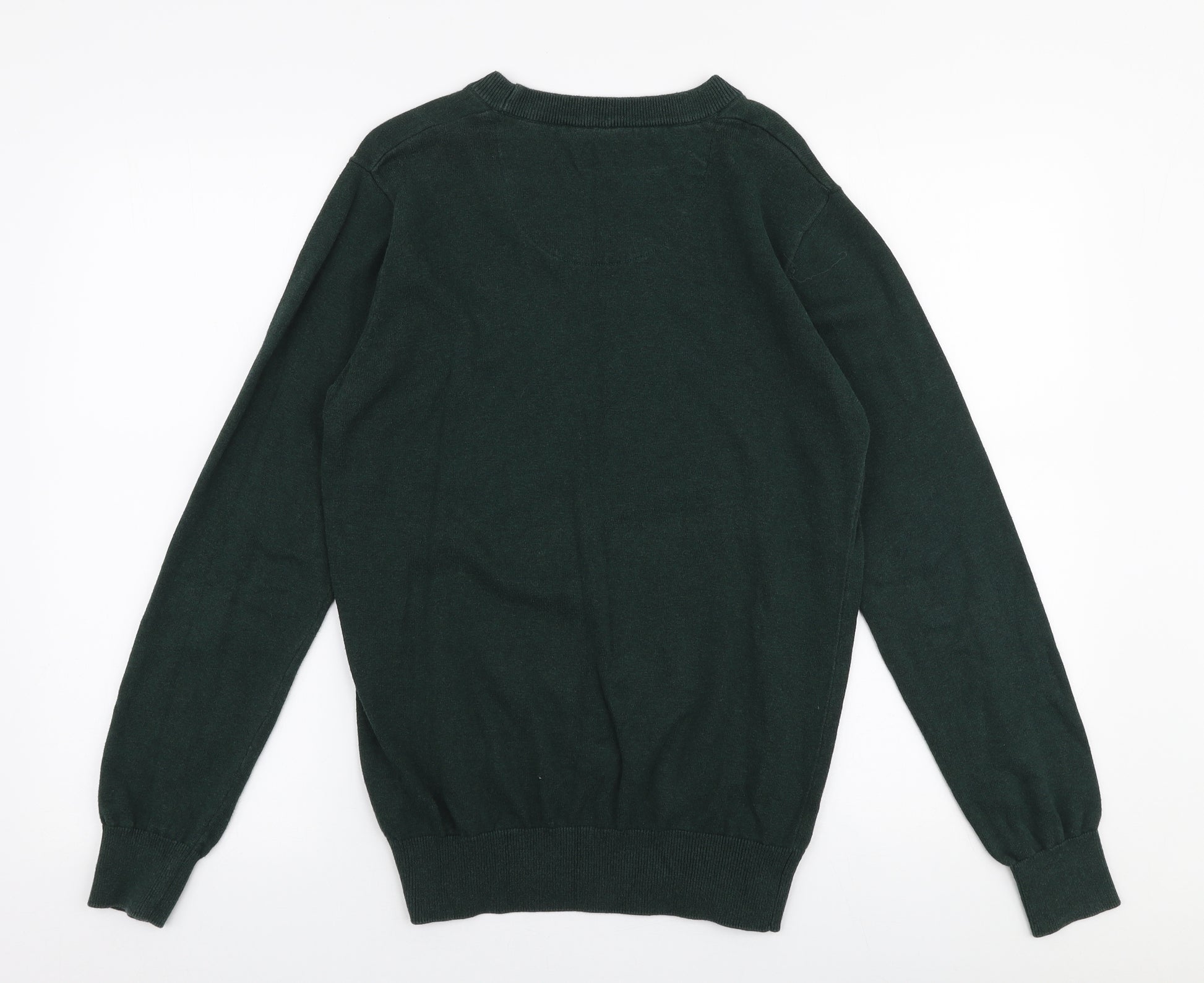 Mens Green Round Neck Cotton Pullover Jumper Size S