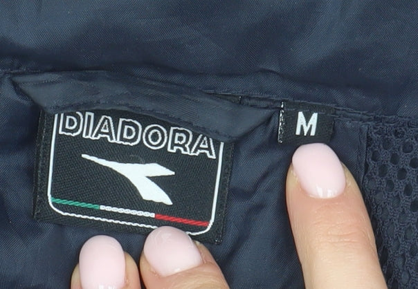 Elevate your casual wardrobe with this Diadora men's windbreaker jacket, perfect for mild spring and autumn weather. Designed for style and comfort, this jacket features a classic stand-up collar and a full zip closure that offers ease in wearing. The zipped pockets add practical functionality while keeping your essentials secure. Made entirely from 100% polyester, this jacket promises durability and easy care, making it a versatile addition to your outerwear collection.In a sleek blue hue, this regular fit jacket pairs effortlessly with your favourite casual outfits. Ideal for sports activities such as walking or jogging, it provides comfort without compromising on style. The logo accent reflects the well-regarded Diadora brand, adding a subtle touch of class.Whether you're in need of a reliable layering piece for unpredictable weather or a stylish accompaniment to your everyday ensemble, this windbreaker jacket is a must-have. Being wrinkle-resistant and machine washable enhances its practicality, making it a reliable choice for busy lifestyles.This jacket is in excellent condition, with no visible damage other than a slight crease, which is easily resolved through regular use. Though it lacks the sales tags, it remains a worthwhile purchase for anyone in search of quality and functionality in their wardrobe staples.