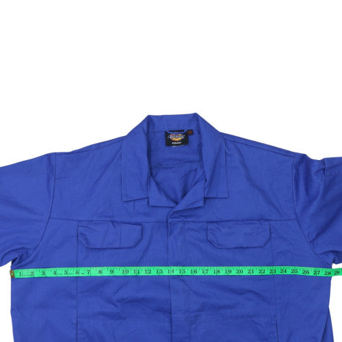 Stay comfortable and protected with this high-quality Dickies Redhawk men’s workwear jacket, crafted for durability and practicality. Designed in a classic blue colour, this 2XL regular fit jacket features a strong twill fabric made from a blend of 65% polyester and 35% cotton, offering both breathability and resilience for everyday use. The jacket has a collared neckline with a spread collar, a button closure, and practical chest pockets to keep essential items secure while on the job. Its lightweight yet robust build provides ease of movement, making it suitable for a range of work environments and light outdoor activities throughout autumn, spring, and summer. The signature Dickies logo on the front hem and label adds a professional and recognisable touch to this dependable garment. Designed to deliver both function and comfort, this jacket maintains a smart and clean aesthetic ideal for tradesmen, technicians, or anyone needing durable outerwear. In excellent condition with only minimal signs of wear, it remains fully serviceable and ready to wear straight away. Machine washable for easy care, this Dickies Redhawk jacket represents dependable performance and lasting value. A staple piece for work or casual layering, this blue jacket blends practicality, comfort, and style that Dickies is known for, ensuring reliable protection and a timeless workwear look you can count on every day.
