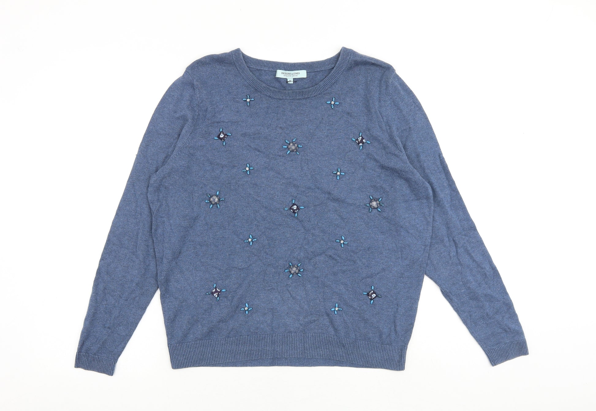 Womens Blue Round Neck 100% Cotton Pullover Jumper Size M