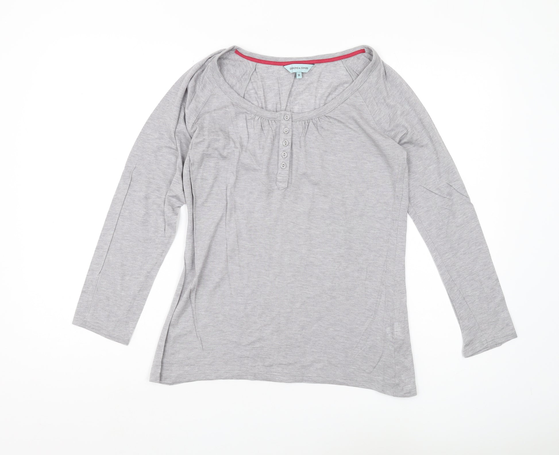 Upgrade your casual wardrobe with this elegant grey Henley T-shirt from Dickins & Jones. Perfect for both autumn and winter, it is crafted from a soft blend of 70% lyocell and 30% wool, ensuring comfort and warmth. The long raglan sleeves provide a relaxed fit, with a stylish button accent on the neckline adding a touch of sophistication. Ideal for casual outings, this regular fit T-shirt is versatile and easy to pair with jeans or skirts. Machine washable, it offers both convenience and style. Despite being in excellent condition with no visible wear, it’s priced competitively to ensure great value. An essential addition for any woman looking to effortlessly enhance her everyday look.