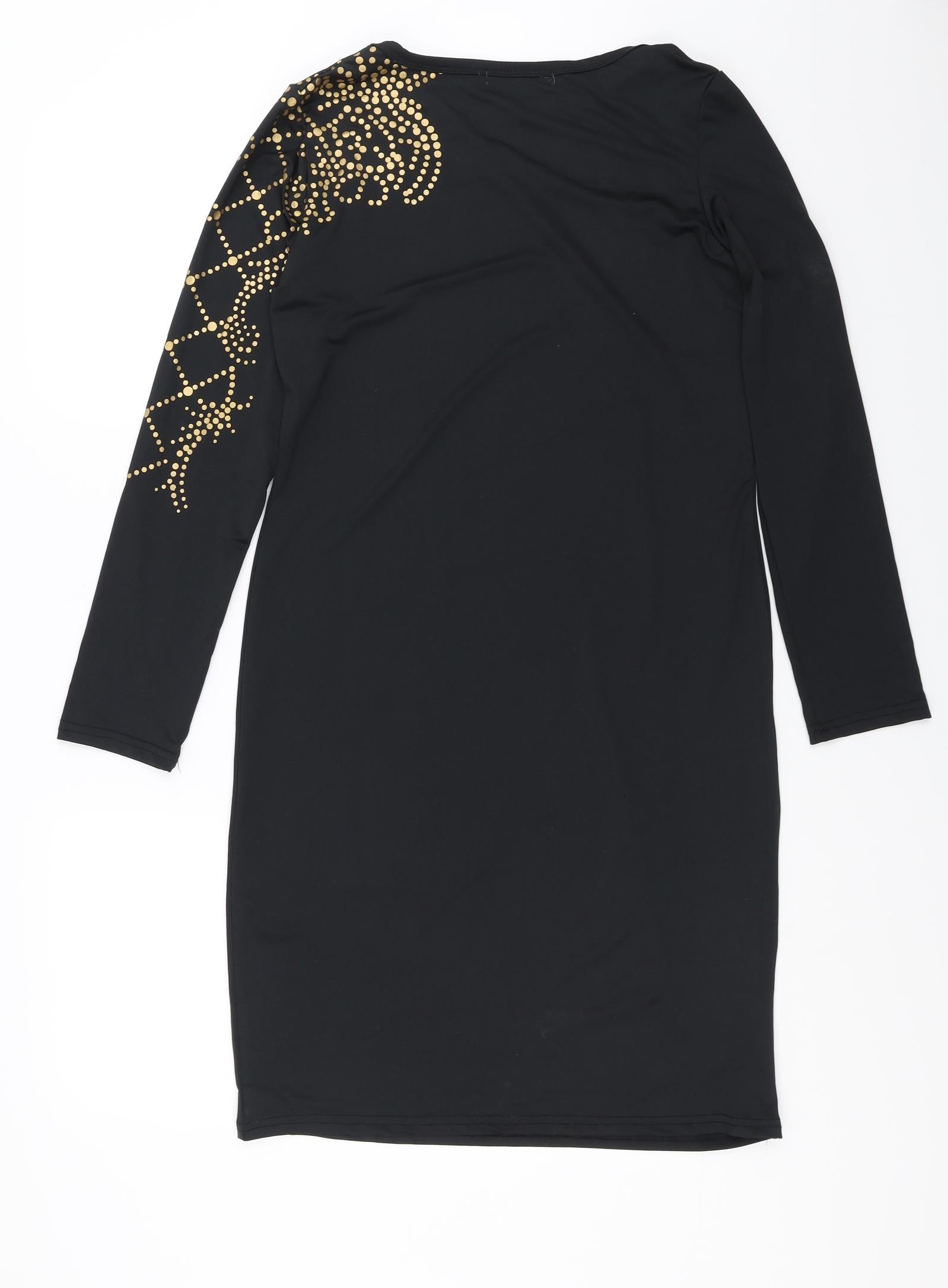 H&M Womens Black Colourblock Viscose Jumper Dress Size M Square Neck Button