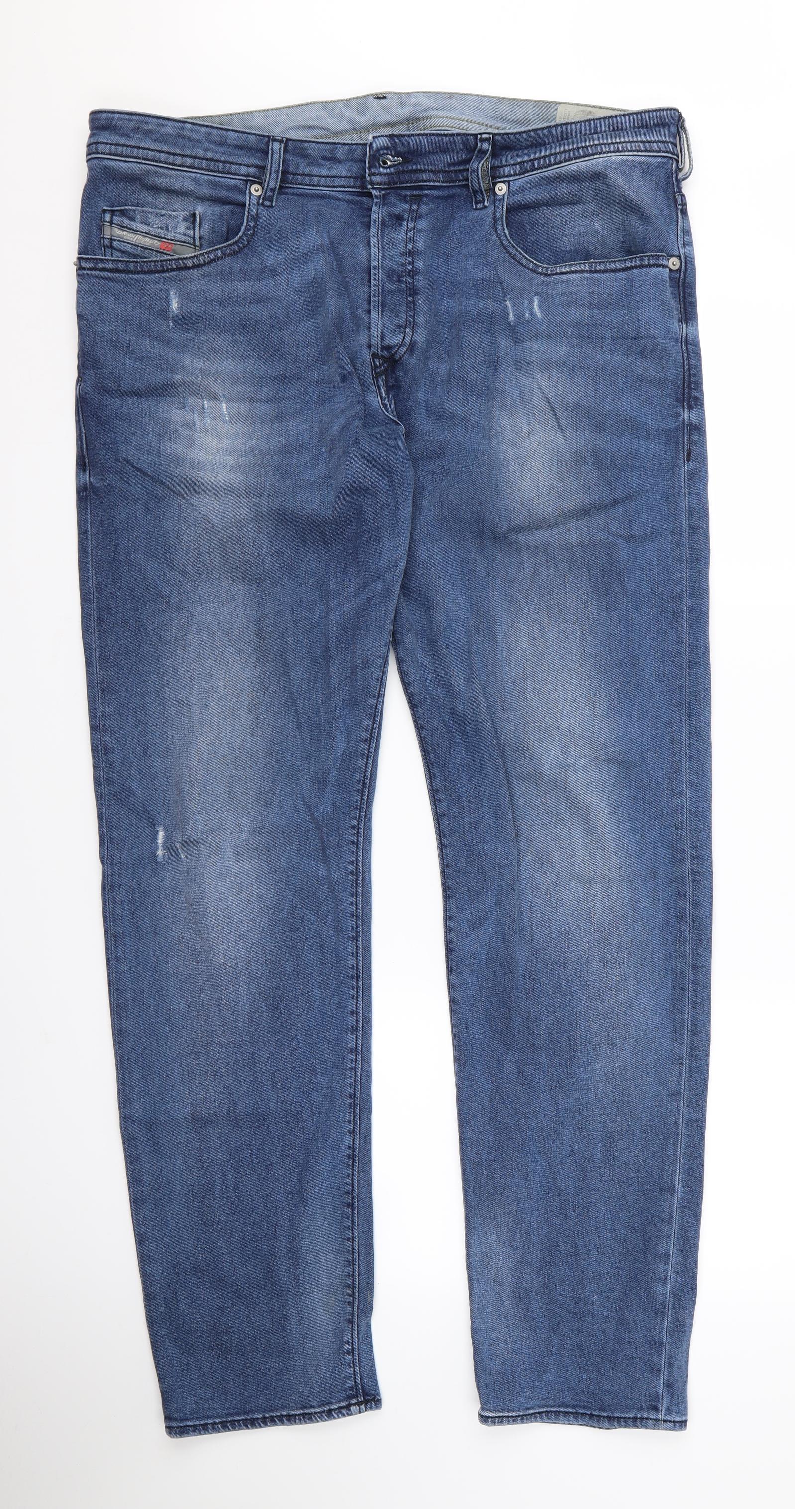 Diesel Men's Blue Distressed Straight Fit Denim Jeans Size 34