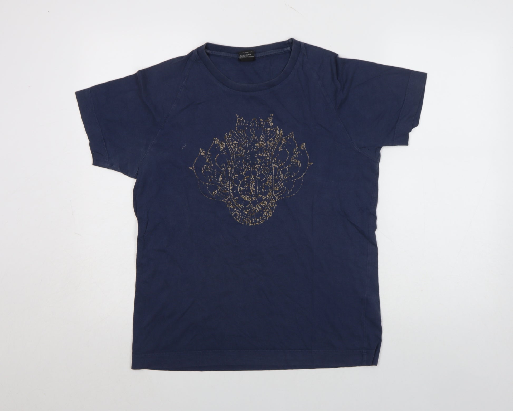Men's Blue Graphic Print Cotton T-Shirt Size M