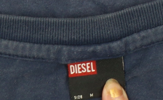 Step into effortless style with this Diesel Men’s Navy Blue T-Shirt, tailored for modern comfort and versatility. Crafted from 100% soft jersey cotton, this breathable and lightweight short sleeve tee delivers all-day comfort in any casual setting. The finely detailed front design showcases an intricate gold-toned graphic accent, adding a touch of edgy personality that’s classic to Diesel’s urban-inspired aesthetic. With its regular fit and crew neckline, this T-shirt maintains a clean, structured silhouette that complements jeans, joggers, or casual shorts for everyday wear.Made for the fashion-forward man who appreciates high-quality, simple design with standout detailing, this top pairs effortlessly with your streetwear rotation. The pure cotton material provides moisture-wicking comfort, keeping you cool on warmer days or when layering under jackets during cooler months. The short sleeves and naturally soft texture enhance comfort, while the graphic print introduces subtle character and individuality. Easy to maintain and machine washable, it’s ideal for quick refreshes and long-lasting wear.Whether for weekend outings, relaxed holidays, or off-duty days, this Diesel tee embodies casual sophistication with durable quality. Perfect for those seeking premium construction and distinctive design, it’s a wardrobe essential that bridges comfort and authentic style. Crafted with meticulous detail, Diesel’s commitment to superior fabric and finish is evident in the smooth stitching, durable cotton weave, and signature brand detailing. Expect long-lasting wear and a flattering drape that complements a range of body types.Conditioned in very good vintage shape, this t-shirt shows mild signs of previous wear with minor fading that adds to its lived-in character, without compromising its visual quality. Pair it with denim and trainers for an easy, timeless look that resonates with Diesel’s signature urban cool aesthetic. A must-have piece for fans of minimalist design mixed with stylish accents.