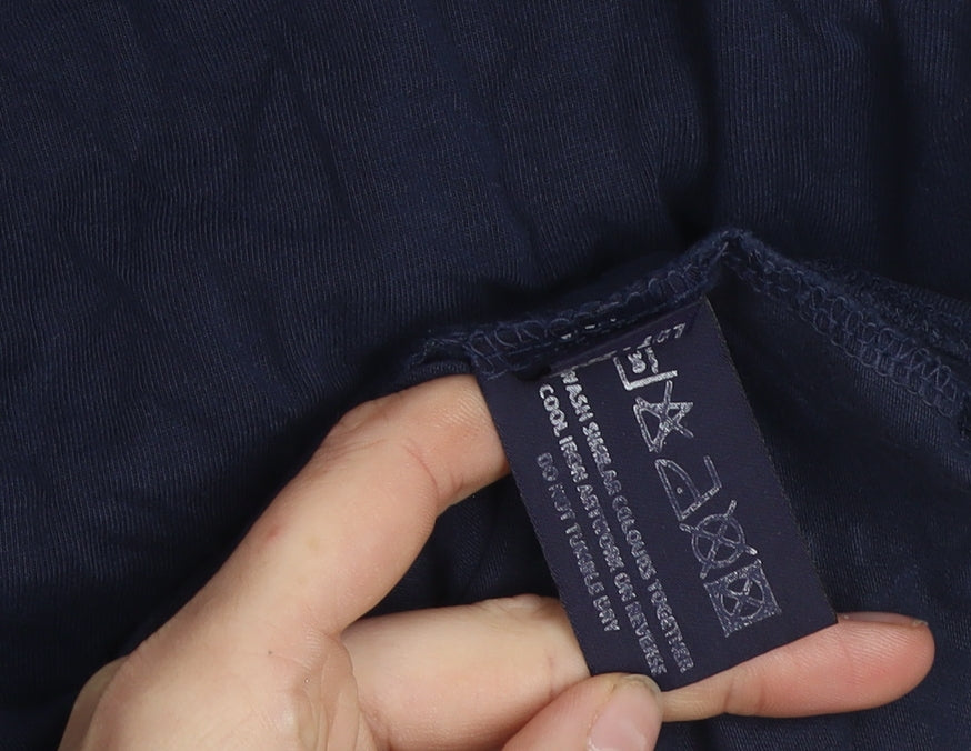Mens Blue Logo Tape Regular Fit Cotton T-Shirt Size L