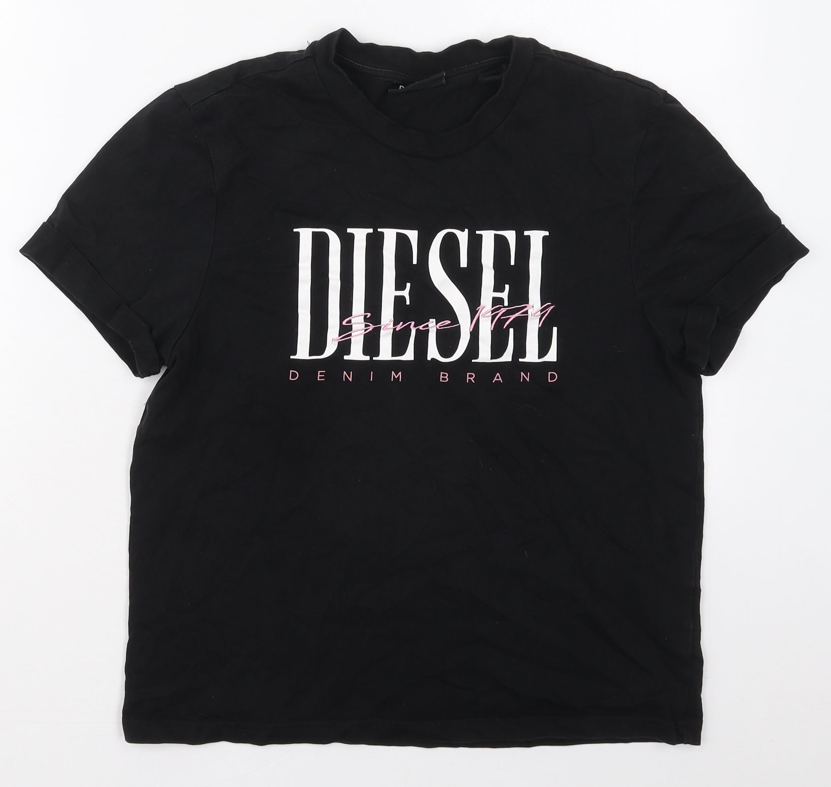 Womens Black Cotton Basic T-Shirt Size M Crew Neck