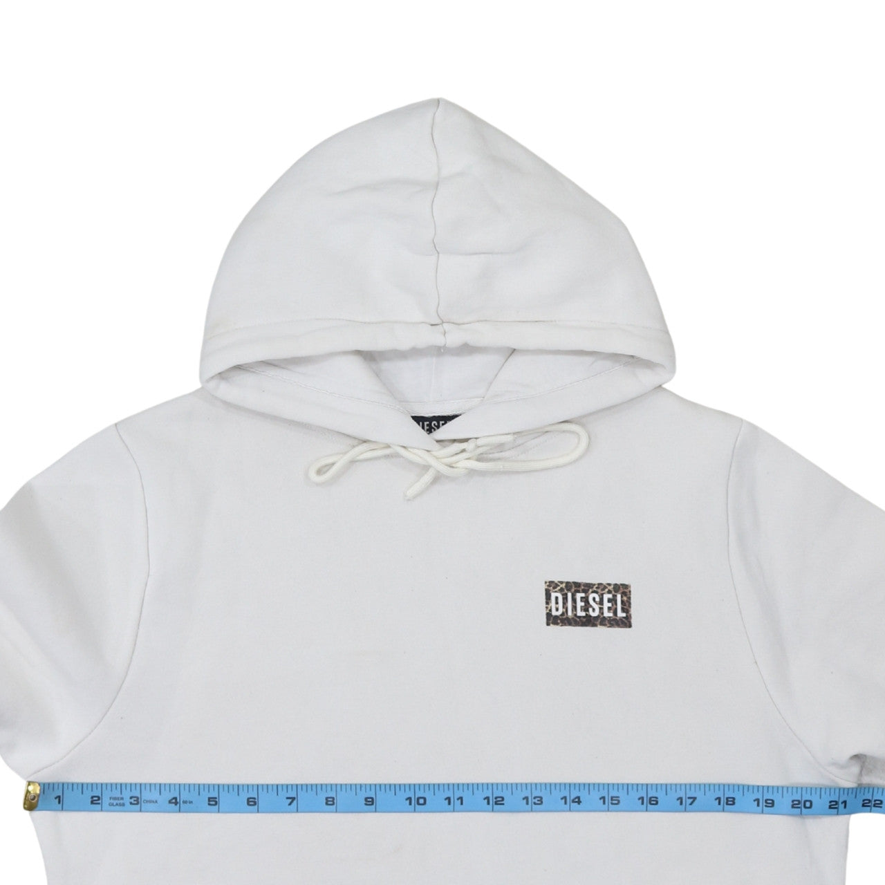 Step up your off-duty look with this Diesel white pullover hoodie, designed to bring effortless comfort and timeless street style together. Crafted from a soft fleece blend of cotton and polyester, this hoodie delivers both warmth and durability—perfect for layering across the seasons. The clean white colourway keeps things versatile, making it easy to pair with your favourite jeans, leggings, or joggers. A signature Diesel logo patch with subtle detailing on the chest adds a touch of designer flair and instantly elevates the casual design. Featuring a drawstring hood for adjustable comfort and a classic kangaroo pocket to keep your hands warm or hold essentials, this women’s hoodie doesn’t compromise on functionality. The long sleeves with ribbed cuffs and hem ensure a flattering fit that retains its shape over time. Ideal for women seeking a relaxed yet stylish everyday hoodie, this piece offers breathable comfort suitable for autumn, spring, and winter wear. While gently worn with faint marks visible around the pocket and lower front area, it remains in good condition with plenty of life left to offer. Whether you’re heading out for walks, lounging at home, or styling a casual day look, this white Diesel hoodie combines practical warmth with understated streetwear edge. A must-have addition to your capsule wardrobe or a thoughtful gift for fans of premium branded loungewear, this hoodie perfectly balances iconic branding and everyday wearability.