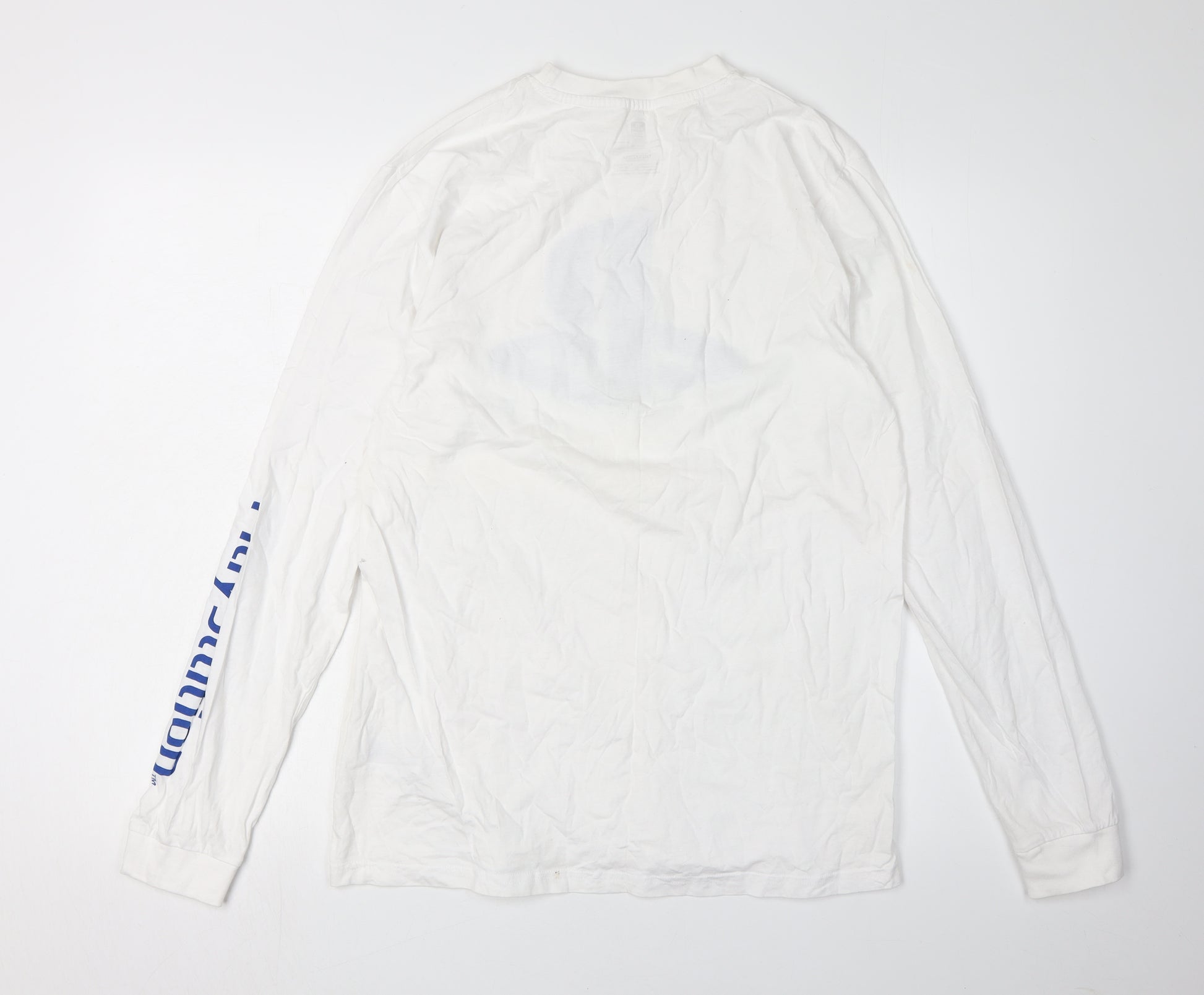 Dive into the world of gaming fashion with this Difuzed Men's PlayStation T-Shirt. Crafted exclusively for fans, this medium-sized, long sleeve t-shirt in pure white pays homage to the iconic PlayStation brand. Featuring a bold blue PlayStation logo on the front, it makes a striking statement for any casual gathering or gaming event. Made entirely from soft, breathable cotton, this shirt ensures comfort and style throughout all seasons. Its classic crew neck design and regular fit make it a versatile addition to your wardrobe. Although preloved, it is in good condition, showing only slight wrinkles and a minimal stain, reflecting a carefree, laid-back vibe. Machine washable for easy care, it's an ideal choice for gamers who appreciate both fashion and function. Complete with the official PlayStation branding, this shirt not only celebrates a gaming legacy but also enriches your collection. Whether you’re buying for yourself or gifting a fellow gaming enthusiast, this t-shirt promises to deliver both nostalgia and style. Ideal for casual outings or game nights, it’s your gateway to flaunting your passion for PlayStation while staying effortlessly chic. Seize this opportunity to express your love for gaming culture with this licensed PlayStation apparel.