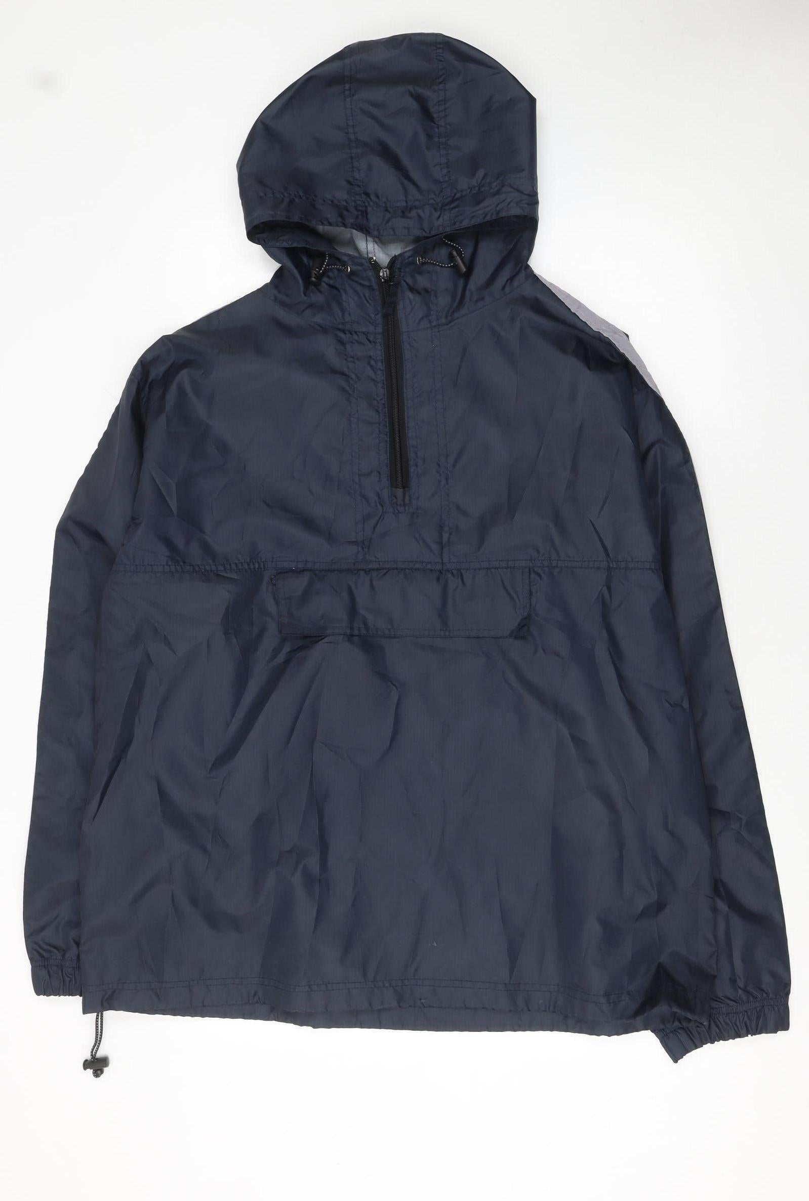 Step into effortless urban style and everyday practicality with this Disciple Men's Blue Anorak Jacket in size Large. Designed for versatility and comfort, this mid-length jacket delivers classic outdoor utility in a lightweight, windproof construction perfect for unpredictable British weather. The durable polyester outer shell provides reliable protection from the wind and light rain, while the full polyester lining maintains a comfortable fit and feel for all-day wear. Featuring a smart 1/4 zip fastening, adjustable hood with drawcords, elasticated cuffs and hem with toggle pull, and a spacious front pouch pocket, this jacket combines functionality with laid-back character. The navy blue tone offers timeless appeal, complemented by subtle grey detailing along the sleeves for a contemporary touch. With its lightweight microfibre fabric, this anorak is an easy grab-and-go essential, ideal for layering over casual pieces during transitional seasons like spring and autumn. The regular fit ensures a comfortable silhouette suitable for both everyday use and outdoor pursuits such as hiking, walking, or travel. Simple yet stylish, this hooded top offers a fuss-free way to stay comfortable while looking sharp. In excellent used condition with only minimal signs of wear and no visible flaws, this Disciple outerwear piece is a great sustainable wardrobe addition for anyone who values quality and practicality. Perfect for commuters, weekend explorers, or those who appreciate effortless, sporty design. Pair it with jeans, joggers or cargo trousers for an easy casual look, or throw it over your gym gear for a functional finish. A smart and reliable choice that never goes out of fashion—durable, breathable, and effortlessly cool.