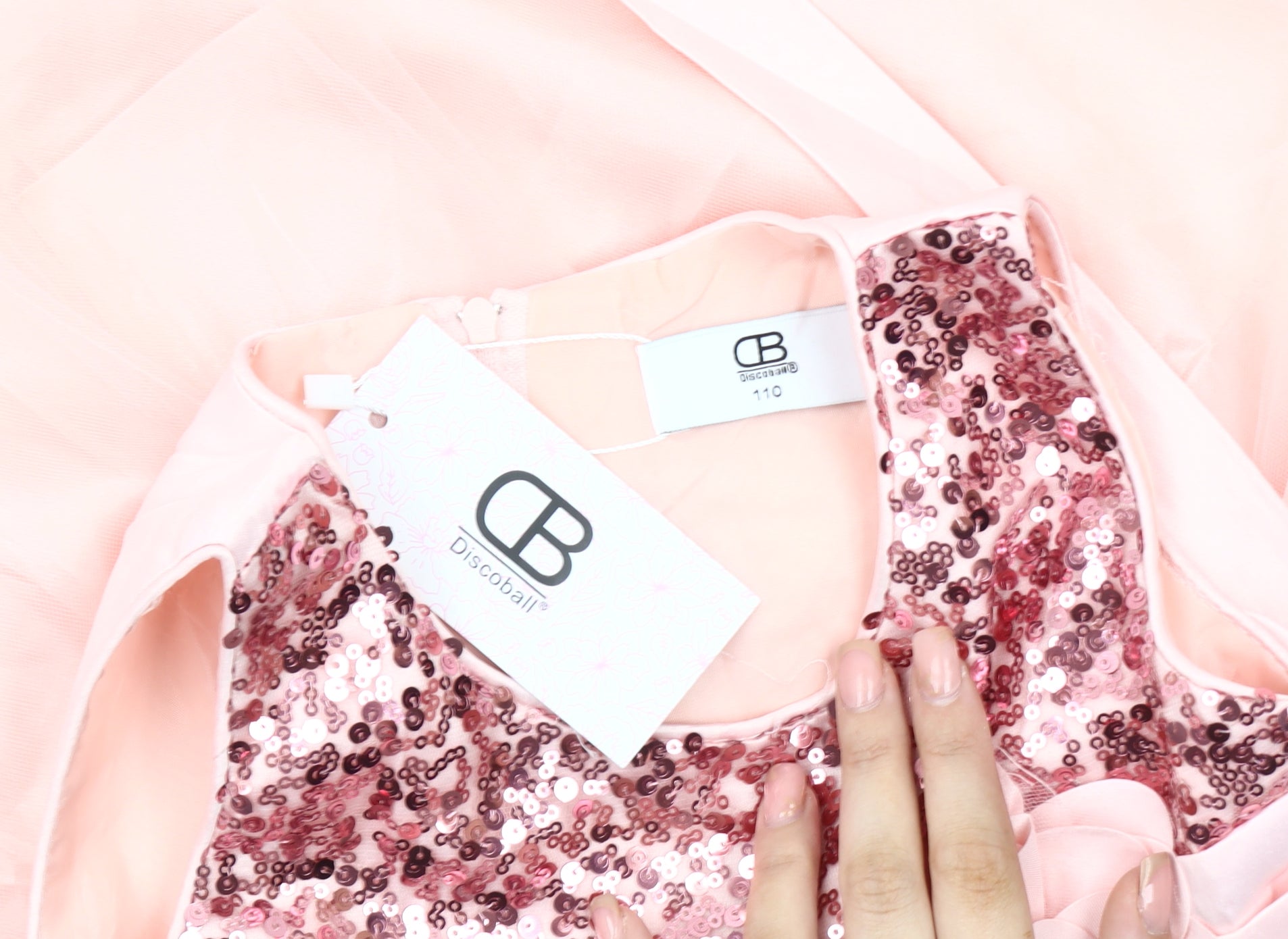 Add a touch of sparkle to your little one's wardrobe with this stunning pink sequin tutu dress from Discoball. Perfect for parties and weddings, this dress is designed to make any occasion special. Crafted with attention to detail, the sleeveless design and round neckline add elegance, while the charming sequin accents on the bodice bring a delightful shimmer. The fluffy tulle skirt adds a girly flair, making it a dress that any young girl would love to twirl in. Made from 100% polyester, it is lined for comfort, ensuring your child feels as lovely as she looks. This dress is available in size 110, suitable for children aged 5 years. With a zip closure at the back, it is easy to wear and remove. Ideal for spring and summer events, this dress offers both style and comfort, making it a must-have for festive gatherings. Don't miss out on this enchanting dress that promises to capture hearts and compliments. Ensure your child shines at their next event with this beautiful piece from Discoball.