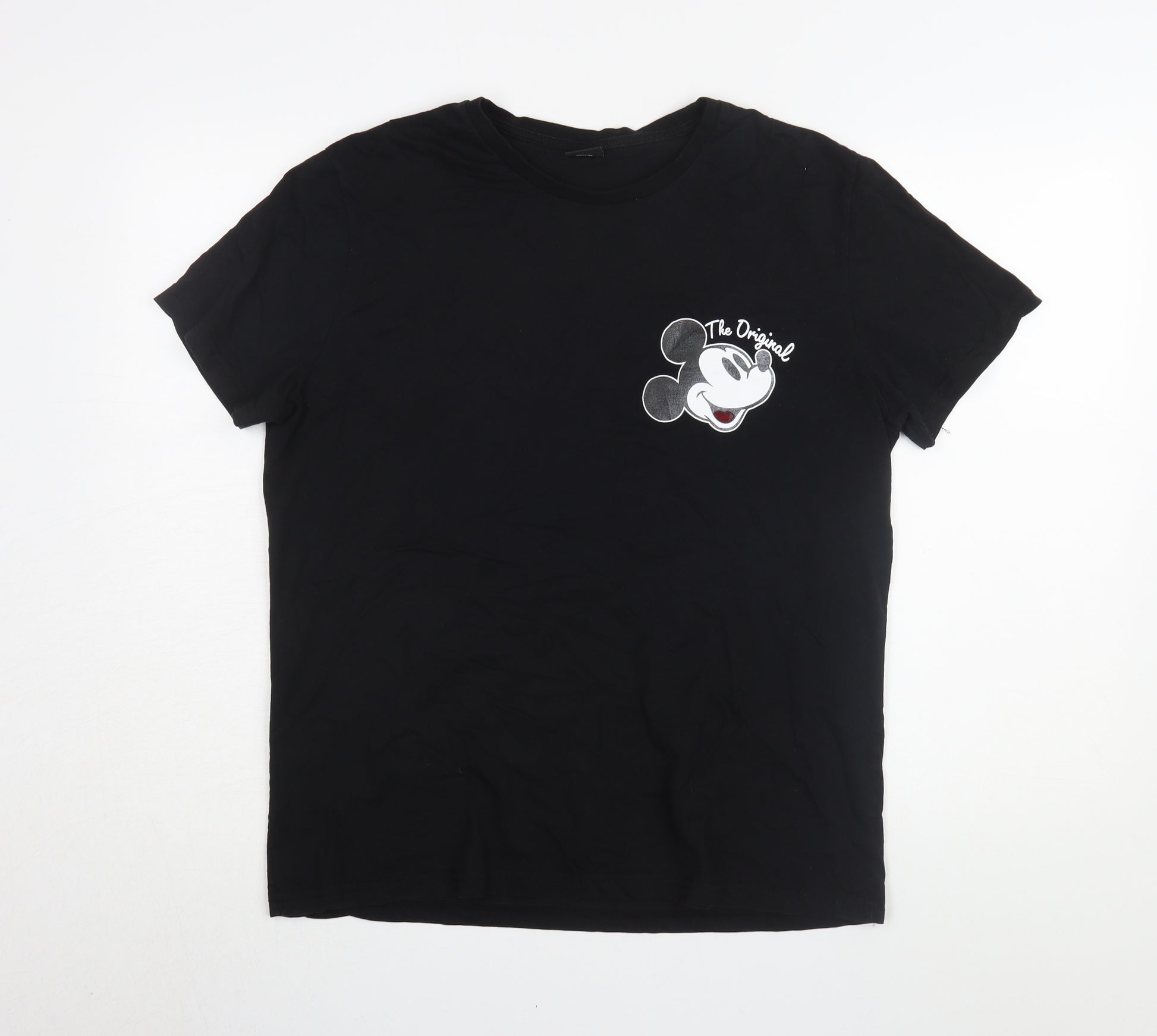 Embrace the magic of Disney with this classic men's tee from Disney at George. Showcasing the beloved Mickey Mouse character, this shirt features a striking black design accented by a playful graphic print of Mickey, ensuring you stand out in any crowd. Perfect for casual outings, this T-shirt has a crew neckline and short sleeves, offering effortless comfort and style. Crafted from 100% cotton jersey fabric, it provides a soft, breathable feel ideal for all seasons. Whether you're a Disney fan or just love a statement tee, this is a must-have in your wardrobe. Perfect for any season, this versatile piece pairs seamlessly with jeans or shorts for a laid-back look. Machine washable, it offers easy care, maintaining its vibrant look wear after wear. While it's in excellent condition, there are signs of slight wear, but rest assured, it remains a stylish addition to elevate your everyday look. Get yours today and add a bit of Disney magic to your collection!