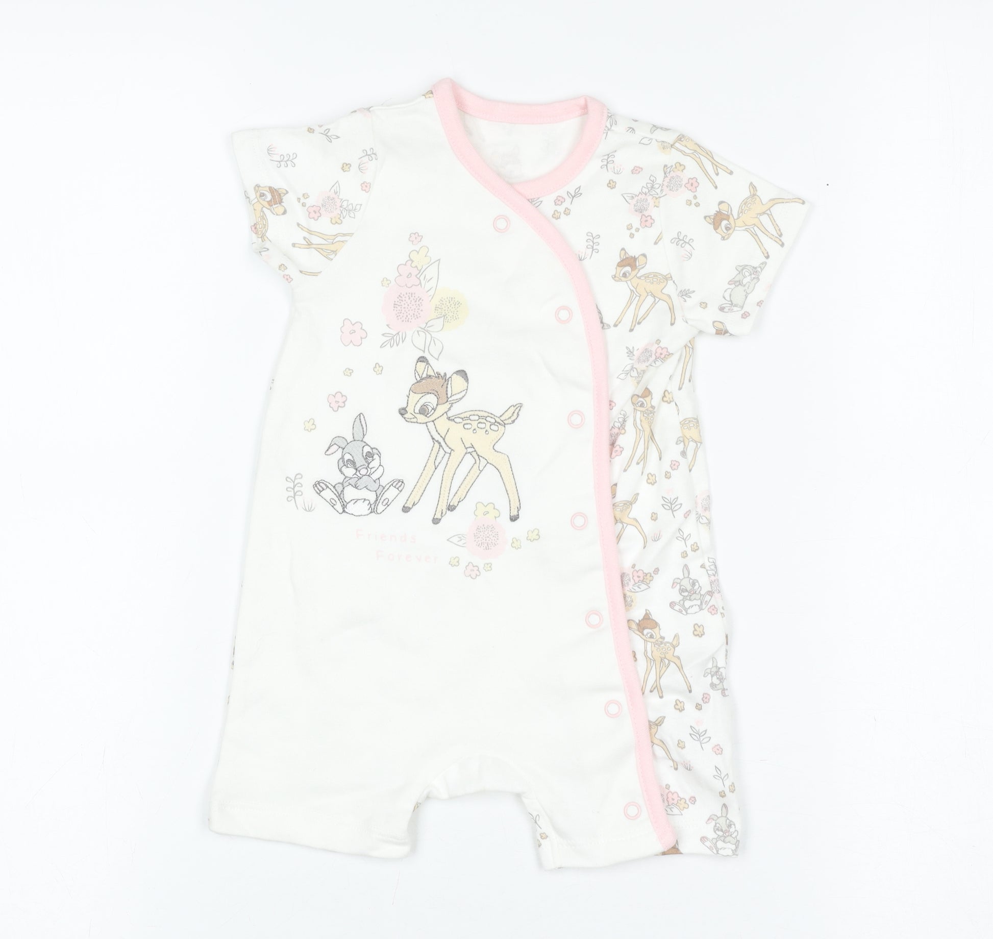 Baby Unisex White 3-6 Months Bambi Cotton Romper Playsuit