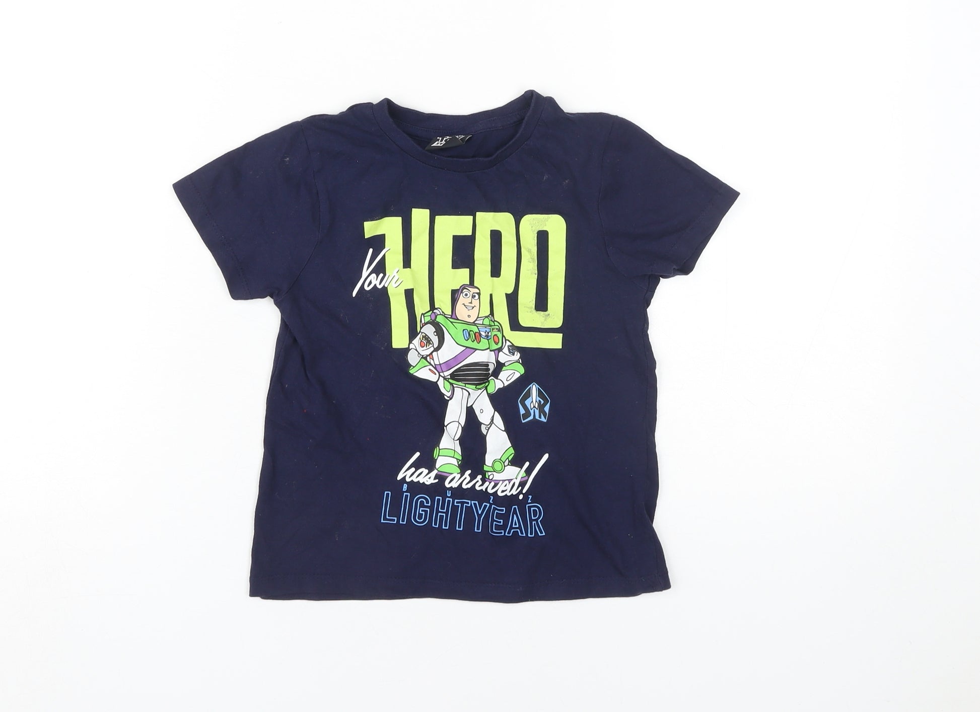 Dive into the adventurous world of Toy Story with this charming Disney Boys Blue Buzz Lightyear T-Shirt. Perfect for the young fan, this short sleeve t-shirt features a vibrant graphic print of everyone's favourite space ranger, Buzz Lightyear, ready to conquer the universe. Made from soft and breathable 100% cotton, it ensures all-day comfort during playtime and beyond. Crafted for boys aged 4-5 years, it features a classic crew neck and a relaxed fit that allows maximum movement, making it ideal for casual outings or relaxed days at home. With its bright and enduring design, this t-shirt is not just a piece of clothing but an invitation to imaginative play. Suitable for all seasons, it's easily machine washable, ensuring hassle-free care for busy parents. Though there are slight signs of wear, its excellent condition guarantees lots of life still left. Priced economically, it offers great value for the Toy Story enthusiast. Pair it with jeans or shorts for a cool, effortless look that will make your little one feel like a true hero.
