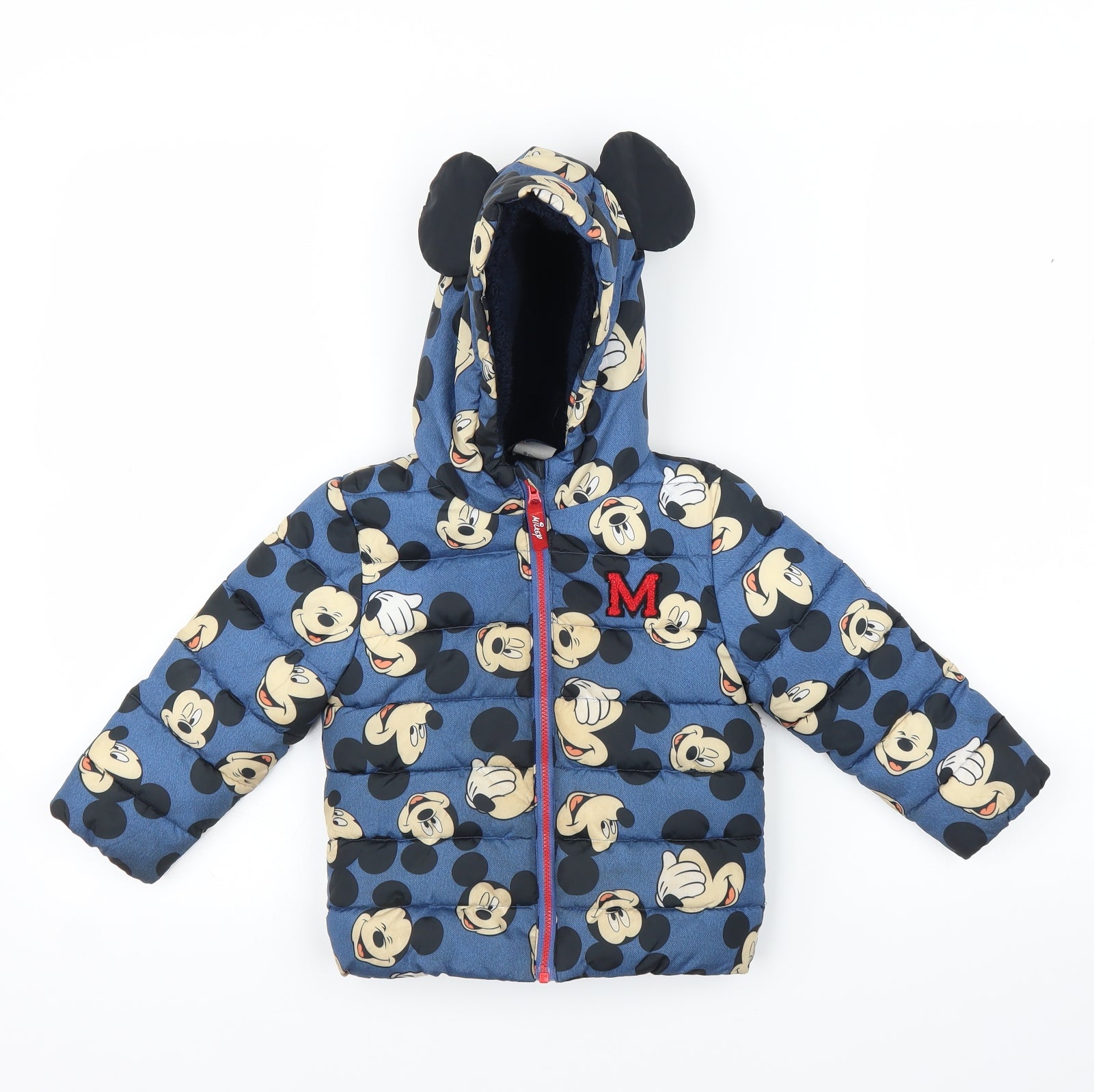 Boys Blue Puffer Jacket Coat Size 2 Years - Mickey Mouse