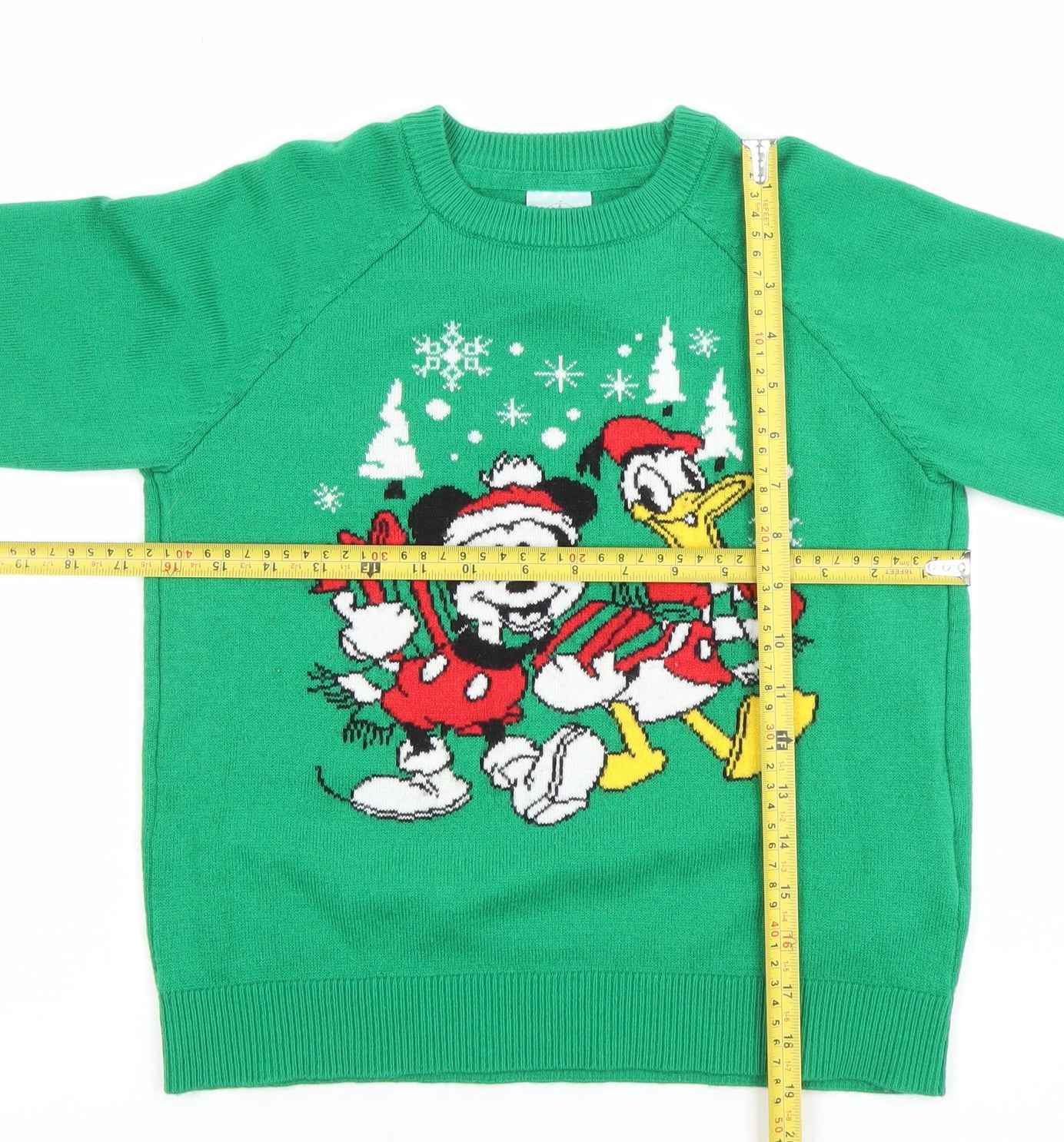 Boys Green Christmas Jumper Mickey & Donald UK 5-6 Years Crew Neck