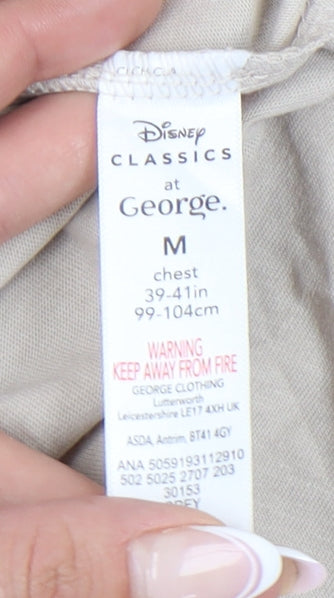 Embrace the magic of Disney with this charming T-shirt featuring a classic Peter Pan theme. Crafted under the Disney Classics at George brand, this beige tee is perfect for fans of the beloved character. Made from 100% cotton, it offers a soft and comfortable wear, ideal for casual outings or relaxed nights. The short sleeves and crew neck design provide a classic fit, while the graphic print showcases iconic Peter Pan imagery that promises to capture attention.Whether you're lounging at home or stepping out with friends, this T-shirt blends comfort with a touch of nostalgia. The medium size offers a regular fit for men, ensuring ease of movement and style. Though lightly used, the shirt remains in excellent condition, free from any visible defects, making it a reliable addition to your wardrobe. An ideal choice for movie nights, themed events, or as a standout conversational piece.This Disney T-shirt invites you to never grow up, capturing the playful essence of Peter Pan. Suitable for Disney enthusiasts and those who cherish timeless stories, it also makes a thoughtful gift for fans of the character. The soft beige hue adds versatility, effortlessly pairing with jeans, shorts, or lounge pants.Limited by the absence of embellishments or closure details, this straightforward yet iconic piece stands out through its design narrative. Affordable and high-quality, it's an enticing offer for anyone looking to add a touch of Disney magic to their clothing collection. Celebrate the enduring legacy of Peter Pan with this delightful top, perfect for any season or occasion.